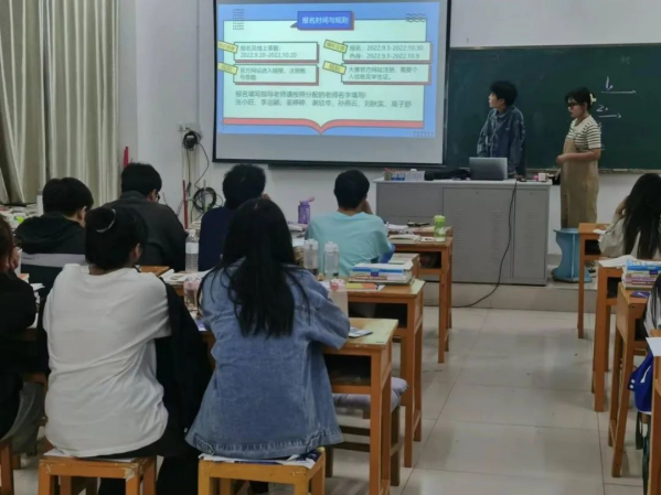 为了更好的推广宣传“黄炎培杯”比赛,让同学们在了解比赛精神与相关要求的情况下积极参与,今年会jinnianhuicom理财社于9月27日开展了“黄炎培杯”比赛推广活动。在前期做好了社员自己学习熟悉相关文件,统筹分工,制作讲解PPT等工作的背景下,由金融教研室主任张小旺老师,社团指导老师李治颖鼓励并带领大家在晚自习时间对21级各个班级进行了进班推广宣传。