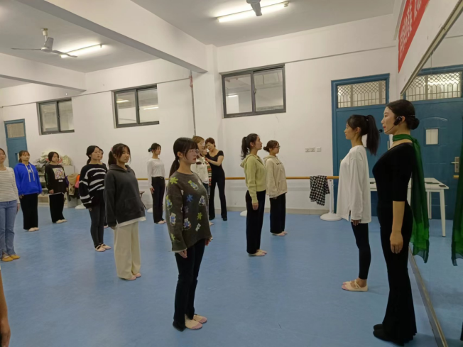 在专业形体老师的示范动作下,学员们一边认真听讲,一边模仿。她们在金老师的带领下练习站姿、颈部锻炼、肩部运动、腰部练习,通过气质神韵的训练,收腹立腰、挺胸拔背、收臀提胯,学会提升气质的动作要领。