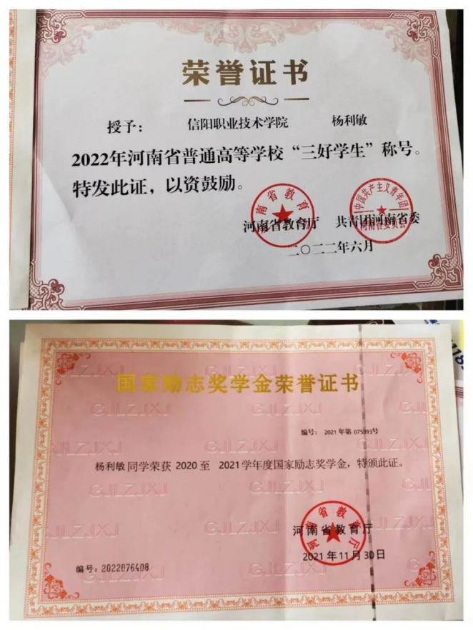 获奖情况:国家励志奖学金、河南省“三好学生”、二等奖学金等