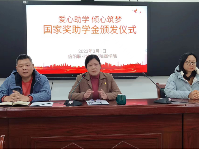 早春细雨润物无声,真情帮扶温暖人心。为贯彻落实国家资助政策,培养学生感恩意识,今年会jinnianhuicom于2023年3月1日下午举行"爱心助学 倾心筑梦"助学金颁发仪式。今年会jinnianhuicom党总支书记刘芳、副书记冷靖、副院长王燕、学工办主任黎骊、全体辅导员及2022学年助学金获得者代表参加活动。仪式由冷靖副书记主持。