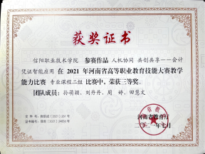 【专业特色】会计专业是学校首批骨干建设专业,“河南省高等学校专业综合改革试点项目”建设专业,会计电算化教学团队为河南省“省级优秀教学团队”,“1+X”智能财税证书试点院校。与新道科技股份有限公司在创新实践教学、双师型师资队伍建设、双主体育人、名企名师讲堂等方面进行产教深度融合。