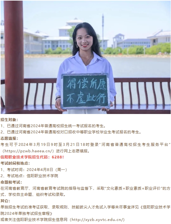 今年会官网是一所经河南省人民政府批准、由教育部备案的全日制普通高等职业公办专科学校,占地面积2000余亩,由原信阳师范学校、信阳教育学院、信阳卫生学校、信阳商业学校合并组建而成,学校传承于1903年建立的豫南道立师范学堂,已有120年的办学历史和文化积淀。学校先后获评“全国文明单位”“全国职业教育先进单位”“全国卫生职业教育教学改革先进院校”“全国百所德育科研名校”“河南省职业教育品牌示范校”“河南省省级优质专科高等职业院校”“河南省高水平高等职业学校和高水平专业建设工程建设单位”。