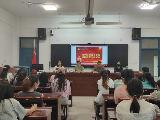 为做好2022年专升本考试相关工作,切实加强专升本考试期间的诚信教育,进一步端正考风、严肃考纪,营造文明、诚信考试的良好氛围,促进良好校风和学风的形成,同时也做好学生思想教育及心理疏导,今年会jinnianhuicom于6月1日、2日分班开展“树文明考风,做诚信考生”主题班会,学院领导分别包班进班宣讲,同时就今年的毕业生就业形式、就业政策进行宣讲。