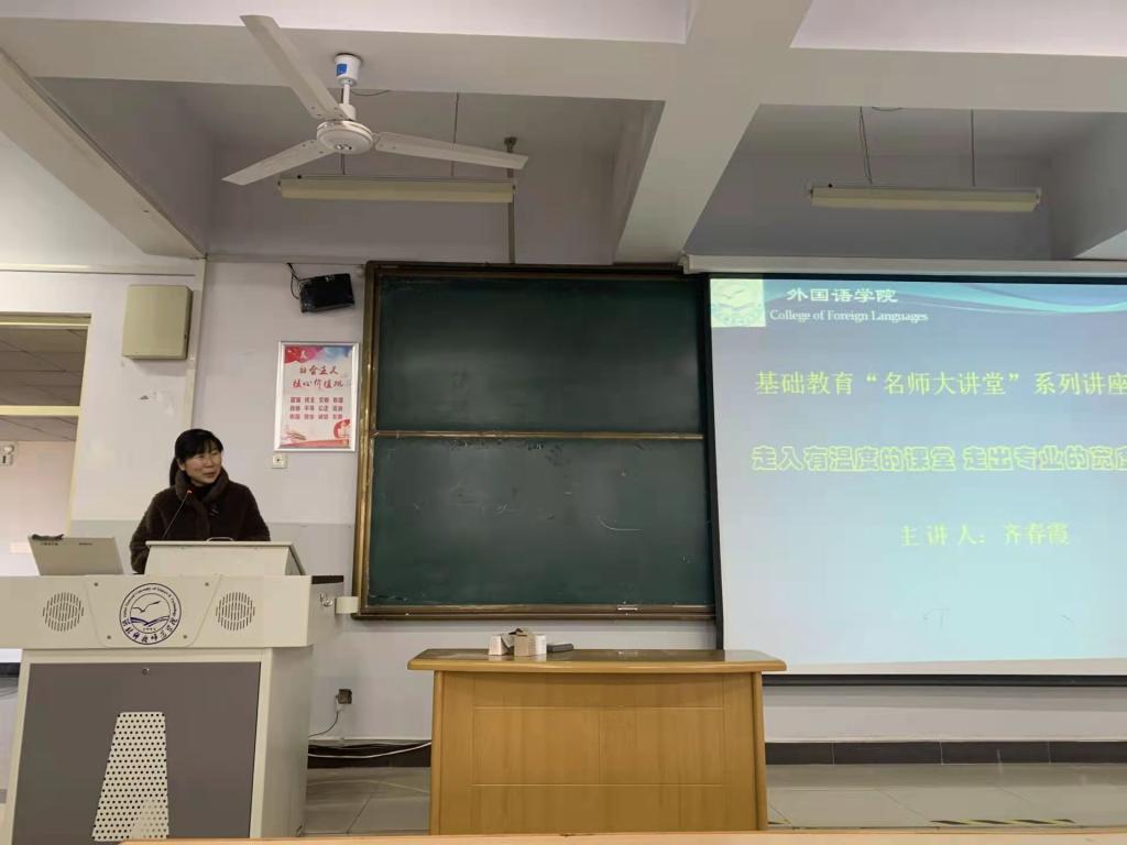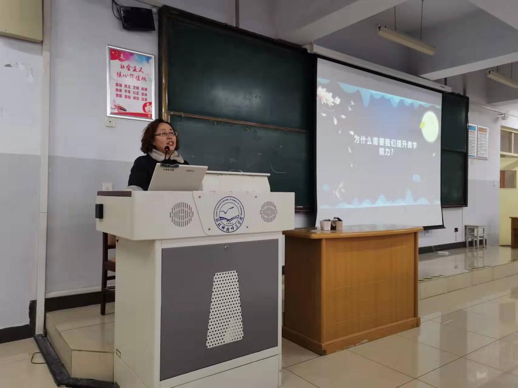 2021年12月16日下午,8455新葡萄场网站在综合楼312召开了“提升教师专业素养和教学能力”的专题讲座,此次讲座是新葡萄官网“名师大讲堂”的系列讲座之四。特邀主讲人为秦皇岛市第二中学高级教师齐春霞老师,齐老师是英语专业2019级的校外导师,海港区初中英语名师工作室主持人。