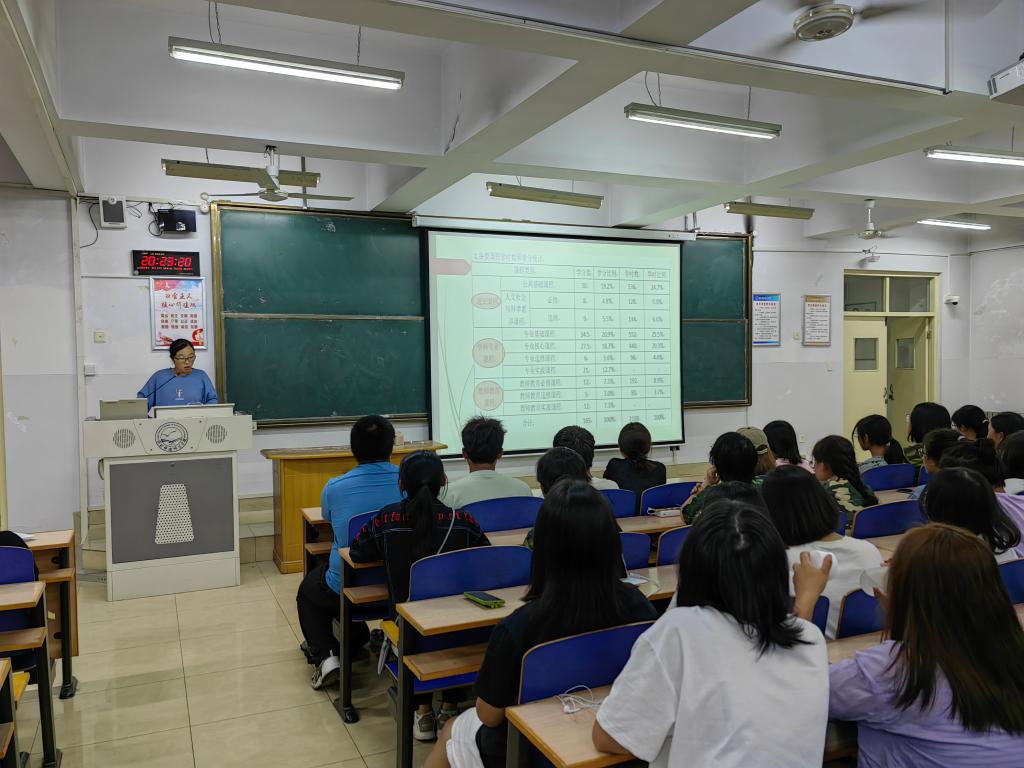 英语专业带头人范学荣、教学部主任王静、宋洁先后就学院情况、英语学科专业背景、培养目标、新葡萄官网师范生培养特色、课程设置和考核、师范生成长手册等方面为学生进行了详细的解读。