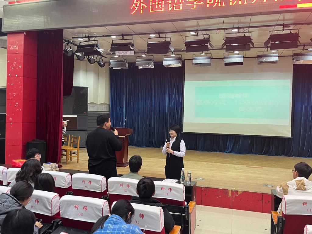 “雏既壮而能飞兮,乃衔食而反哺”。为进一步提升学生专业能力和综合素养,秉承“外语+”应用型人才培养理念,充分体现外语的“学以致用”原则,提升学生用外语“讲好中国故事”的意识和能力,增强文化自信,8455新葡萄场网站于11月8日邀请优秀校友尚志芹(河北建材职业技术学院副教授、对外汉语教学国际汉语高级教师、国家高级英文导游员、河北省英语导游考官、河北省“师德标兵”、全国第十三批援藏导游员西藏自治区“先进个人”)在开发区校区综合楼二楼报告厅进行针对教师资格证和外语导游考试的讲座。