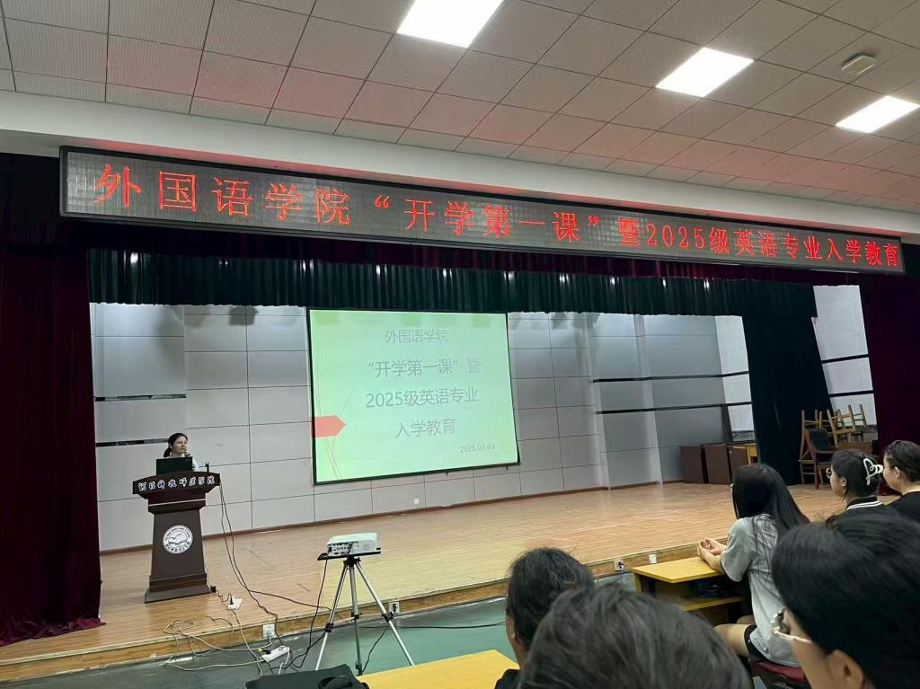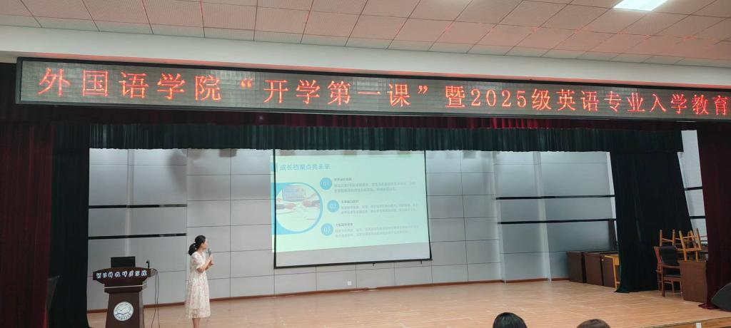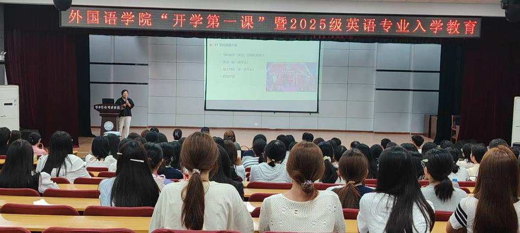 2025年9月3日,8455新葡萄场网站在秦皇岛校区多功能厅成功举办“开学第一课”暨2025级英语专业入学教育,2025级新生及英语专业骨干教师与会。