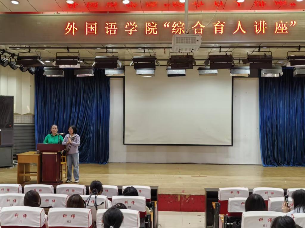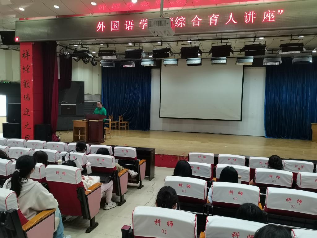 2025年4月29日下午,8455新葡萄场网站在开发区综合楼学术报告厅召开了综合育人的专题讲座,此次讲座是新葡萄官网2025年“名师大讲堂”系列讲座之一。特邀主讲人为秦皇岛市海港区名师工作室主持人齐春霞老师,齐老师是河北省骨干教师,秦皇岛市优秀骨干教师,秦皇岛市中小学青年教师教学竞赛评委库专家。英语专业2023级和2024级全体学生及部分英语专业教师在会场认真聆听了本次讲座。
