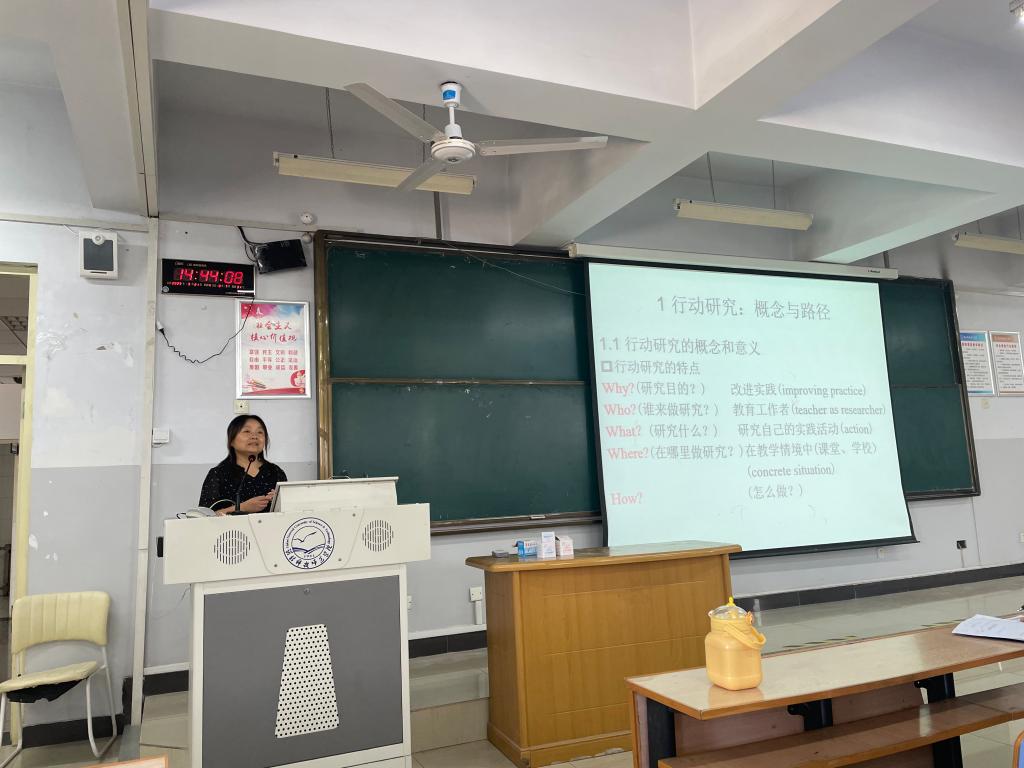 马江涛博士就《行动研究方法与报告撰写》展开细致的论述,系统介绍了行动研究理论内涵及实施过程,讲解寻找选题、制定设计、分析数据、撰写论文等原则与方法;蔡宁老师就案例的选取、案例教学流程、教学效果等方面探讨了案例教学在外语教学中的应用;于开拓老师根据自己在新加坡留学的真实见闻感受,分享了中国和新加坡的文化差异及两国在研究生培养模式方面的不同。