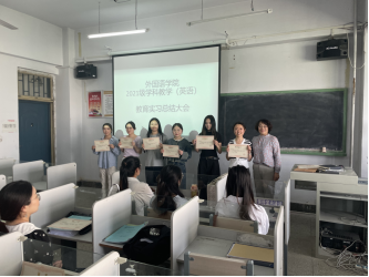 新葡萄官网于5月16日召开学科教学(英语)硕士研究生教育实习总结暨表彰大会,全体21级、22级硕士研究生及导师参会。本次实习总结大会内容包括:表彰在2022年参加教育实习的优秀实习生并颁发奖状,优秀实习生经验分享,学院领导做总结发言。