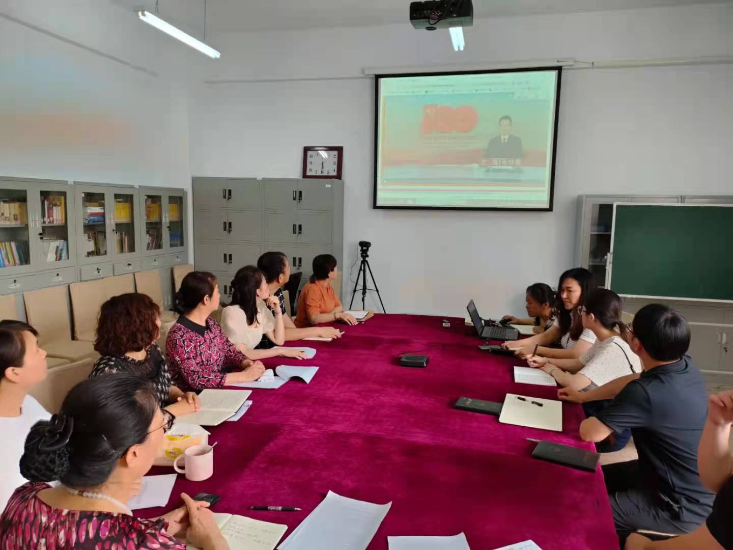 7月1日上午,8455新葡萄场网站党委组织全院师生党员集体收看“建党100周年庆祝大会”现场直播,邵丽君书记主持会议,共55名师生党员参加。