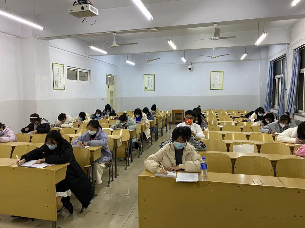 11月20日晚7点,8455新葡萄场网站“团干部模拟考试”在综合楼512举行。此次考试参与人员包括8455新葡萄场网站各班新上任团干部,以及团委学生会青年发展部干事。首先,参与本次考试的同学提前十分钟进入考场签到,戴好口罩隔位就座。随后,8455新葡萄场网站团委副书记王一冰对本次考试的主要内容、注意事项做了简单介绍,强调了考试的纪律,希望同学们认真对待本次考试。接着,青年发展部部长张梦盼提醒同学们将手机调至静音,并有序将手机放于讲桌上,于考试结束后取走。青年发展部副部长徐子涵分发了试题卷与答题卡,细心提醒同学们填写好自己的班级姓名,并预祝同学们取得好成绩。随着七点的考试铃声响起,同学们迅速拿起了笔,目光坚定地投入了这一场没有硝烟的“战斗”中。同学们的一笔一画不仅仅蕴含着自己的努力付出,还承载着作为一名团干部学好团务知识的使命感与责任感。最后,本次考试结束,同学们上交试卷后有序离场。