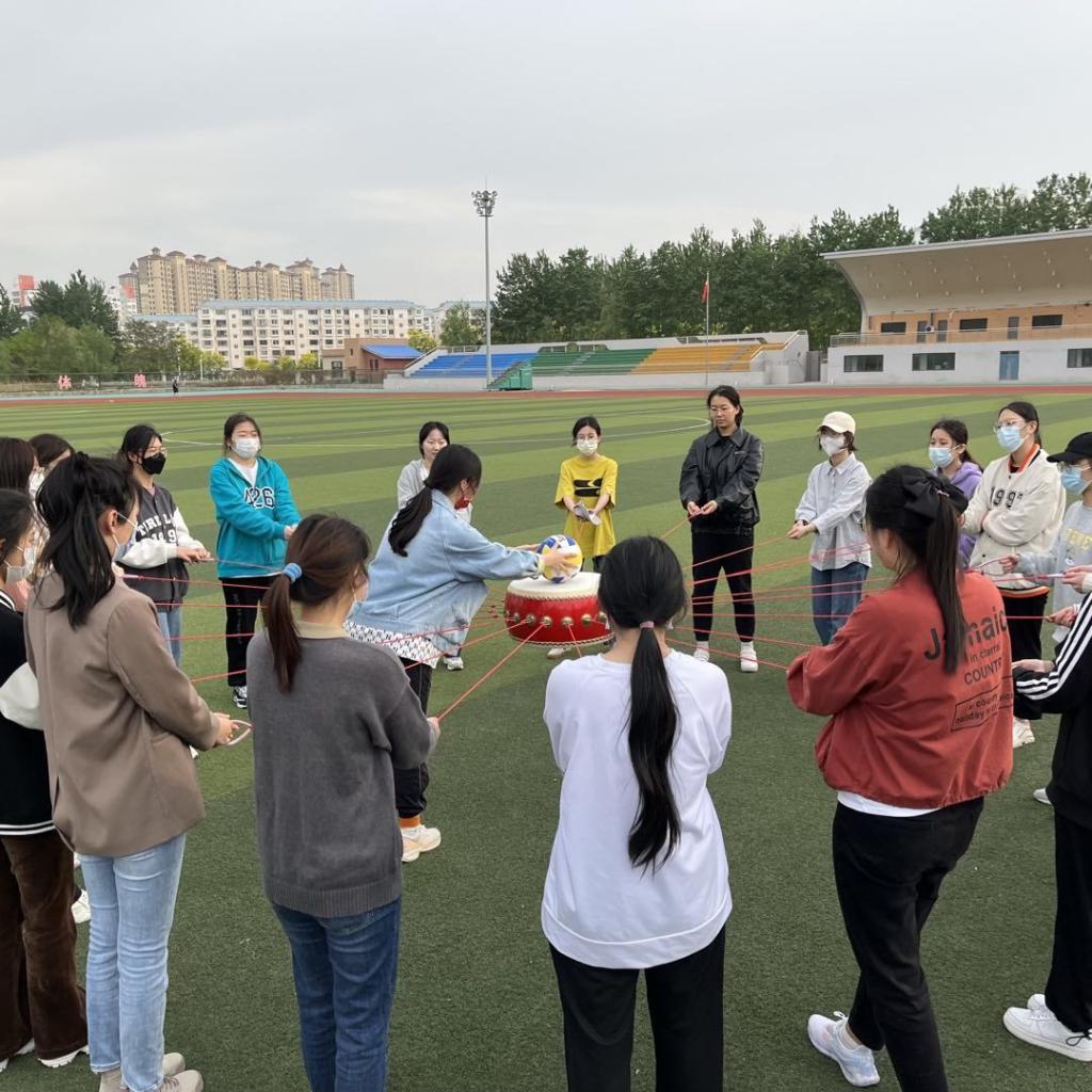 本次活动结合学生心理需求和体质成长,共设“车轮滚滚”、“击鼓传球”、 “能量传输”等多项趣味游戏。游戏开始前,通过热身活动消除同学们内心隔阂、打破陌生、主动接纳。小组成员在团体中自我观察、相互学习,正确认识自我、探索自我。通过团体合作任务,帮助成员调整与他人的关系,学习新的态度与行为方式。