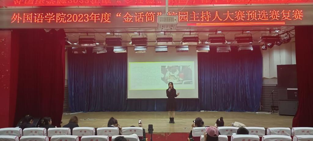 3月以来,新葡萄官网团委学生会多次开展讨论,鼓励同学们展示自我,积极参加校园特色活动,在全院营造出“积极向上,百花齐放;青春洋溢,健康向上”的良好氛围。为充实学生课余生活,培养学生综合素养,新葡萄官网于4月4日在综合楼二报举办了2023年度“金话筒”校园主持人大赛预选赛复赛。