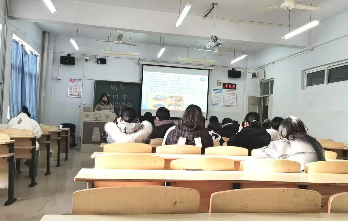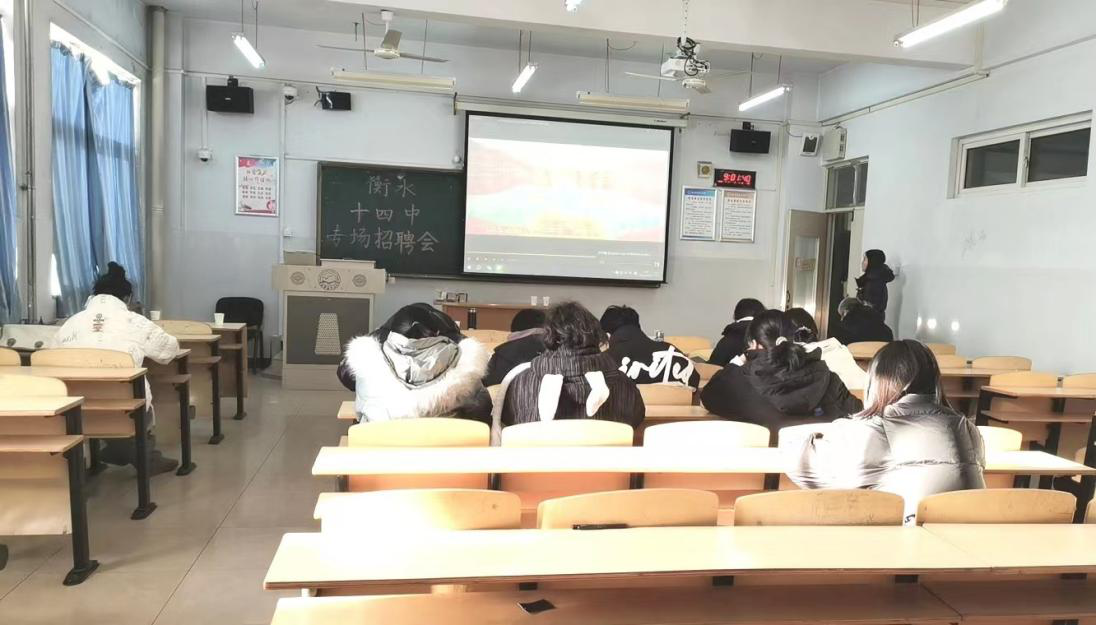 为了给新葡萄官网毕业生提供更广阔的就业渠道和就业平台,衡水市第十四中学于2023年12月27日上午9:00在开发区校区综合楼611教室举办招聘宣讲会。新葡萄官网对于本次招聘活动给予高度重视,在广大毕业生中积极宣传和动员。