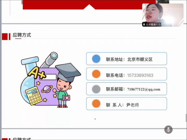 为了更好地促进我校2024届毕业生就业,拓宽就业渠道,8455新葡萄场网站联合北京慧海英才学校,于2023年10月12日19:00在腾讯会议召开招聘宣讲会。新葡萄官网在毕业生群中进行了积极地宣传与动员,产生了良好的反响。