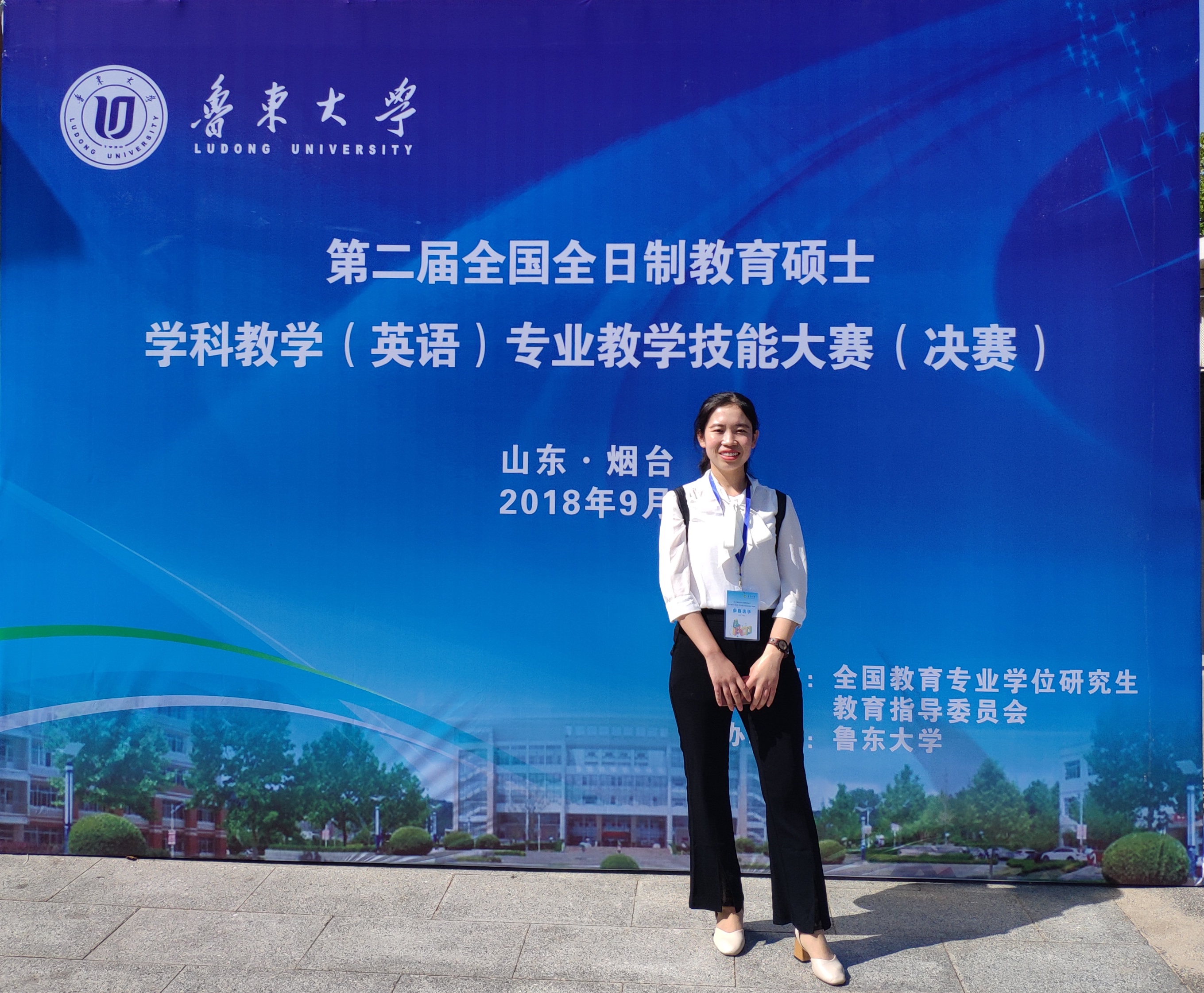 2018年9月21日至23日,第二届全国全日制教育硕士学科教学(英语)专业教学技能大赛(决赛)在鲁东大学拉开帷幕。我校8455新葡萄场网站2017级学科教学(英语)专业研究生赵蔚蔚参加决赛,在模拟讲课和现场答辩两大环节中展示出了我校研究生良好的学科素质和精神风貌,并获得优秀教学设计奖。