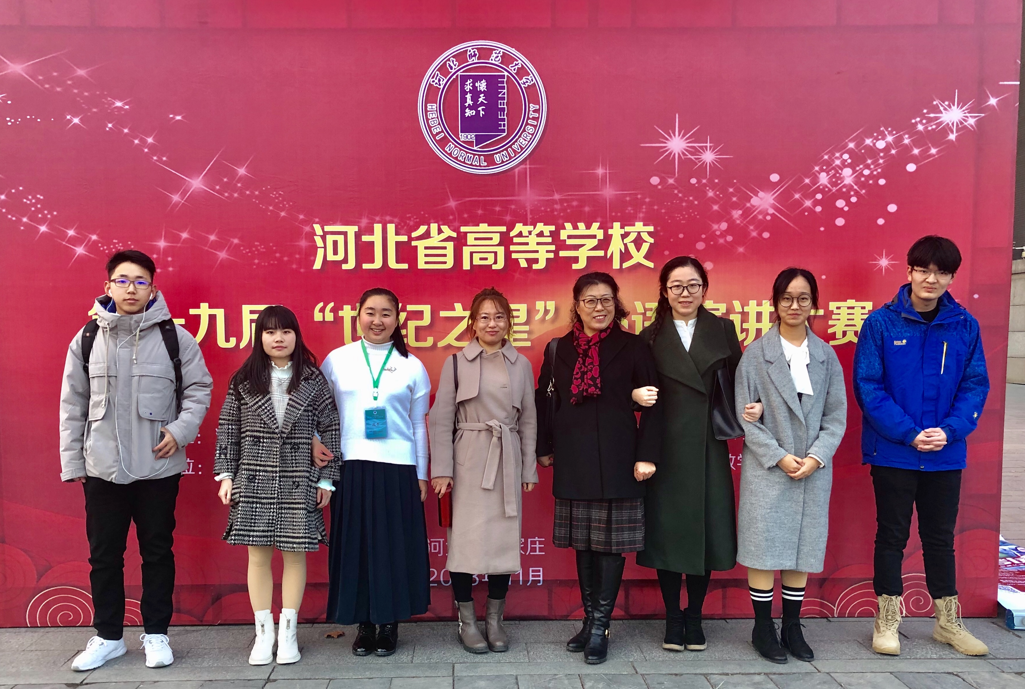 2018年11月17-18日,由河北省教育厅、河北省高校外语教学指导委员会主办的河北省高校第十九届“世纪之星”外语演讲大赛在河北师范大学隆重举行。来自全省103所高校的411名优秀选手参加了为期两天的激烈角逐,我校参赛师生成绩斐然。其中8455新葡萄场网站西班牙语专业17级孙红辰荣获非英语专业组一等奖,英语专业17级郑云萱荣获英语专业组二等奖,应用英语专业16级赵斯琪荣获高职组二等奖,张艺、于开拓老师荣获青年教师组三等奖,西班牙语专业17级薛昊瑞、英语专业17级裴鑫鑫分获三等奖。