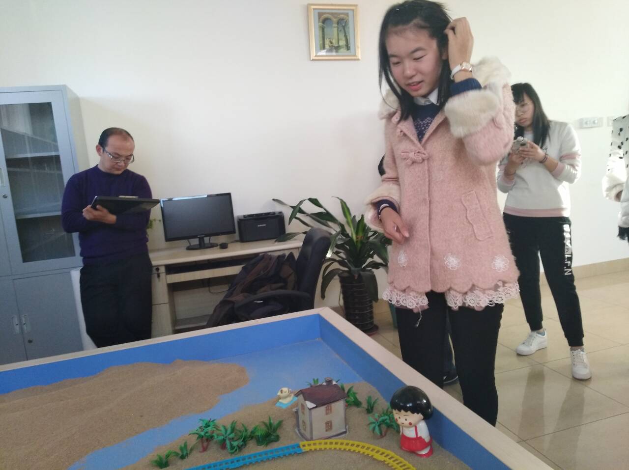 8455新葡萄场网站田辉对西班牙语班委会8人进行了团体心理辅导。在团体心理沙盘辅导中,同学们通过团体沙盘生动形象的经历一个共同努力构建沙盘世界的过程。同学们每一个动作、摆放位置、添加物品及修改调整都需要投入思考与理解,并不断磨合和调节,才能让沙盘世界整体看起来协调完美。8455新葡萄场网站“心灵氧吧”团体心理辅导旨在利用团队心理游戏、团体沙盘等工具,发掘正确的自我认知,感受对他人认知,培养学生干部理解他人、沟通合作、齐心协力等工作素质和能力。