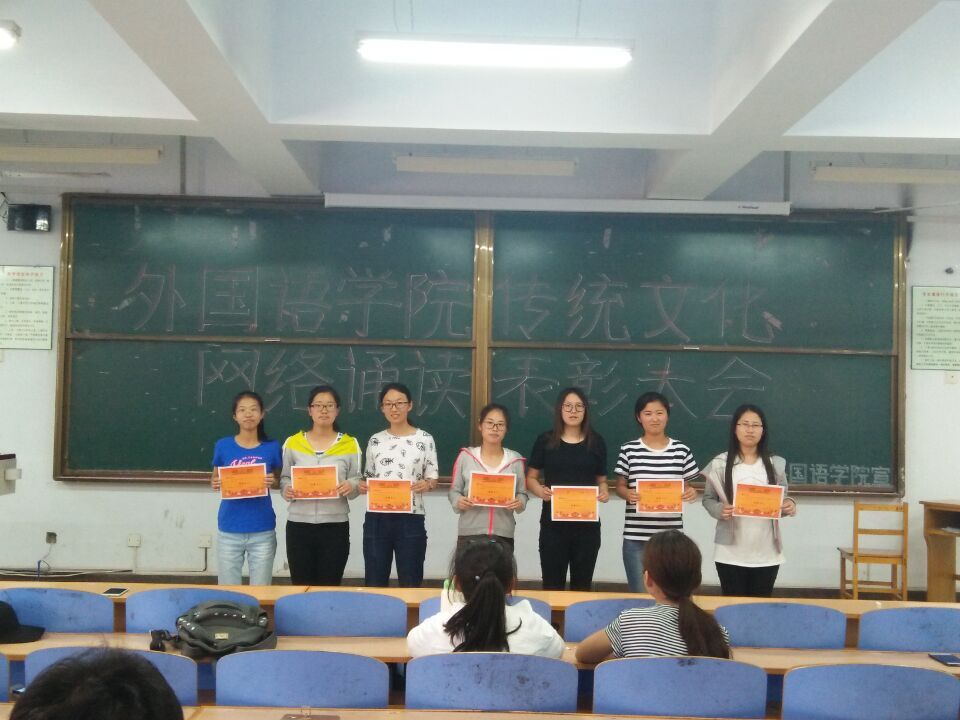 5月11日中午1点,8455新葡萄场网站在综合楼312举行“传统文化网络诵读月度总结和表彰大会”。学工办老师、16级全体班委和表彰学生代表参加了会议。会议开始,主持人首先对学院网络诵读月度情况做了简单的介绍,参与传统文化网络诵读的班级共有9个,学生达272名,网络诵读总时长超过一万分钟。其中前三名的班级网络诵读时长分别为1837、1444和1313分钟,学生个人前三名网络诵读时长分别为209、208、194分钟。之后,主持人宣读获得8455新葡萄场网站大学生传统文化网略阅读的先进班集体5个,优秀领航员3名和先进个人27名,学工办老师为获奖的集体和个人颁奖。最后,学工办主任田辉通过自己学习传统文化的体会,鼓励同学们继续进行诵读,教育学生先诵其书,再懂其理,再用其学,让中华传统五千年的智慧在指导自己的生活、学习和人生发展。
