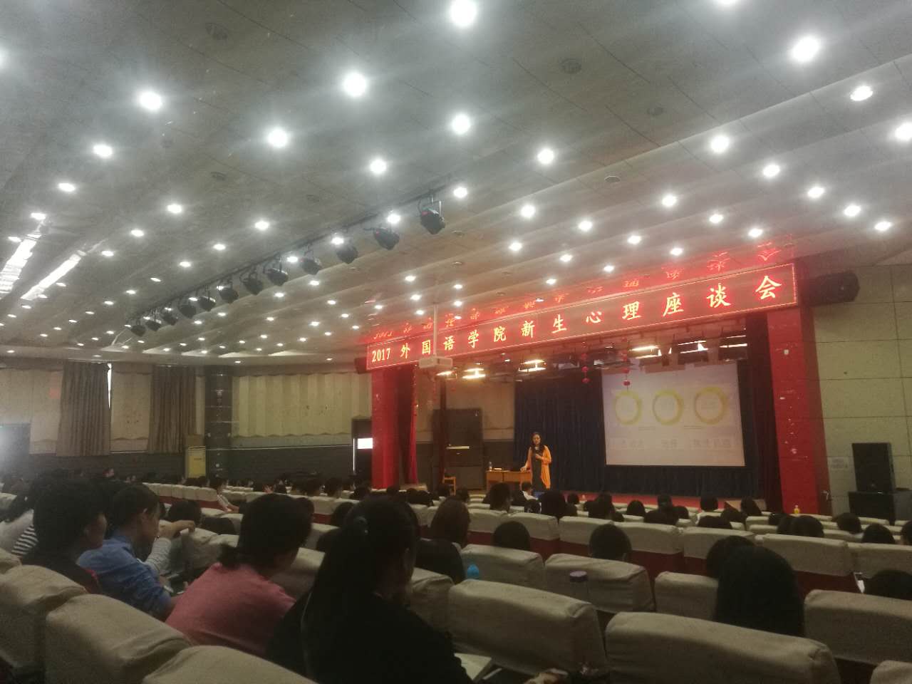 为了帮助2017新生适应大学生活,以健康的心态顺利融入新集体、新生活,8455新葡萄场网站特邀学校大学生心理健康和咨询中心副主任丁书新老师于9月15日上午8:30在综合楼二楼报告厅举行2017级8455新葡萄场网站心理健康教育讲座。学院学工办老师、2017级辅导员班主任、337名新同学参加了心理健康教育讲座。