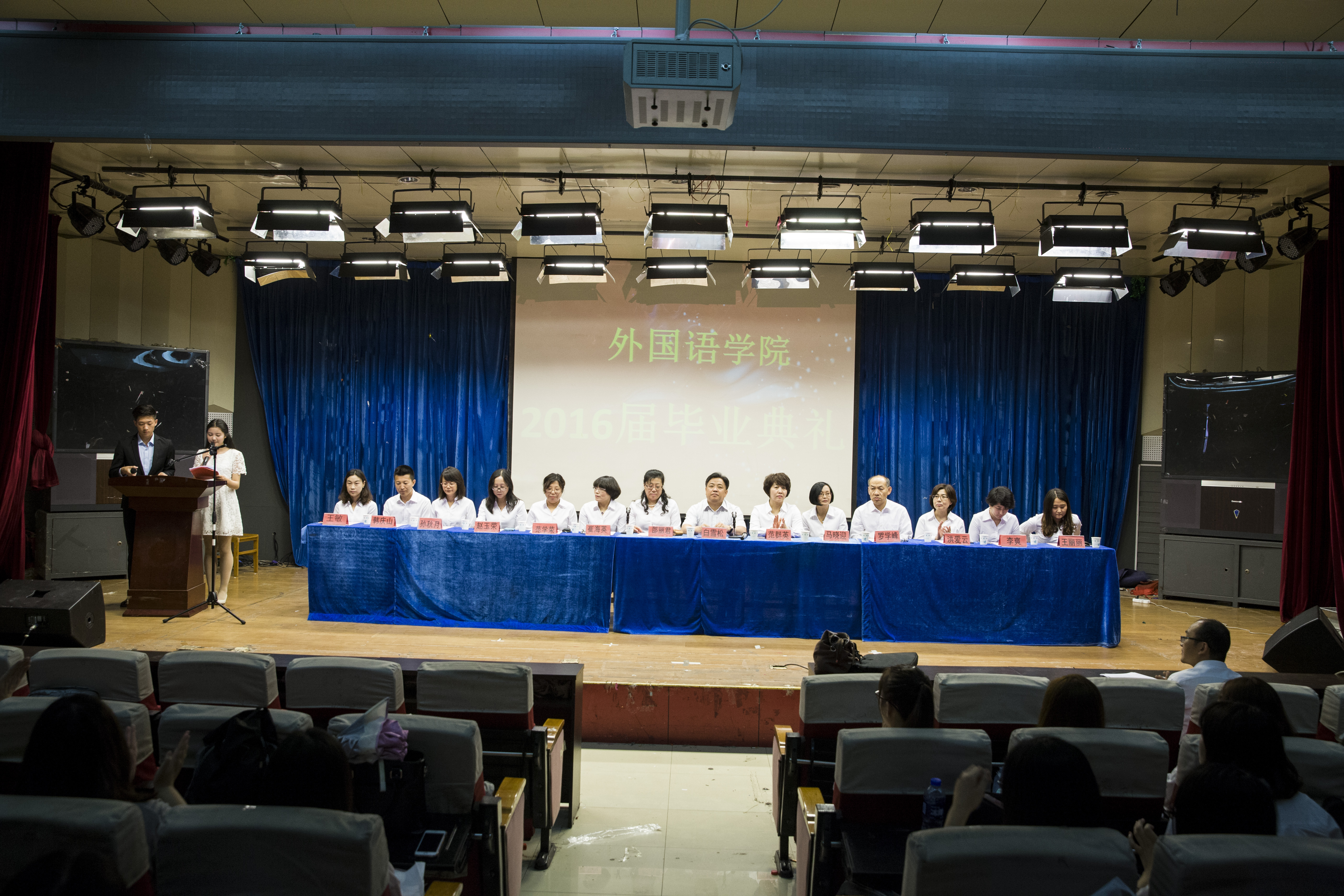 首先,一段温馨的VCR带着同学们的毕业情怀和领导老师的嘱托拉开了典礼的帷幕。之后,邵丽君院长介绍了2016届毕业生的基本情况,对本届毕业生的基本情况做了简单介绍,并对大家顺利毕业表示了衷心的祝贺。范群英副书记副院长和范学荣副院长分别宣读获得2016届省级和校级优秀毕业生名单,崔海英副院长宣读了2016届考取研究生名单,并对省级优秀毕业生和考取研究生同学进行了隆重而热烈的表彰。之后,英语教学部刘丽敏老师代表全院教师发言,回顾美好的大学时光,鼓励大家终身学习,真情道出8455新葡萄场网站永远是温馨家。2013级旅游英语边中奇同学和学生会主席刘晓玉同学分别代表全体毕业生和在校生发言;最后,白雪松书记在典礼上作了激情洋溢的讲话。他充分肯定了毕业生们为学院发展所作的成绩,对即将毕业的同学们提出了五点殷切的希望和衷心的祝福。毕业典礼之后,学院举行2016届本科毕业生学位授予仪式。首先崔海英教授宣读学位评定委员会主席的委托词,之后,8455新葡萄场网站院长邵丽君教授宣读授予学位的决议和名单,最后由各位导师为8455新葡萄场网站194名获得学士学位的毕业生颁发学位证书。