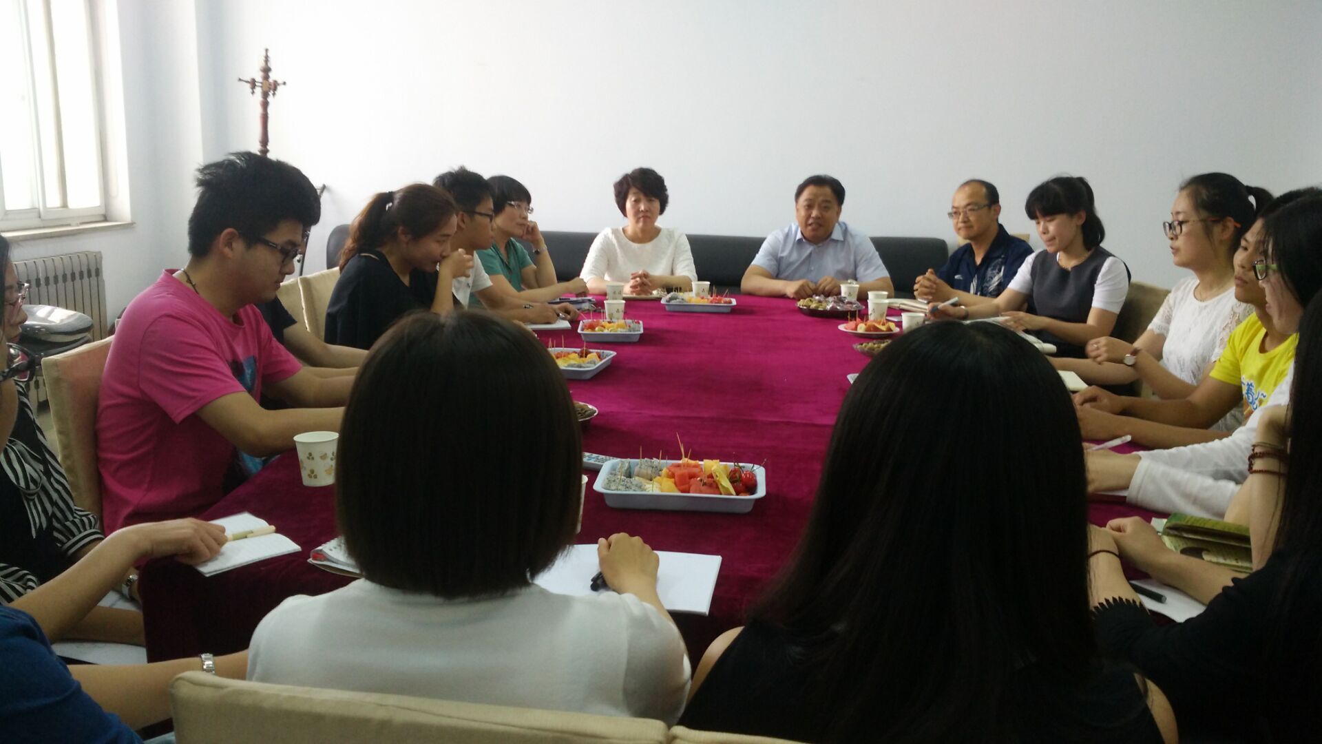 2016年5月27日下午四点半,8455新葡萄场网站在综合楼三楼会议室举行优秀毕业生代表座谈会。本次座谈会邀请到了16位来自学生会、党支部、班级等不同组织的优秀毕业生代表,学院党委书记白雪松、副书记副院长范群英、副院长崔海英及学工办的部分老师也出席了会议。