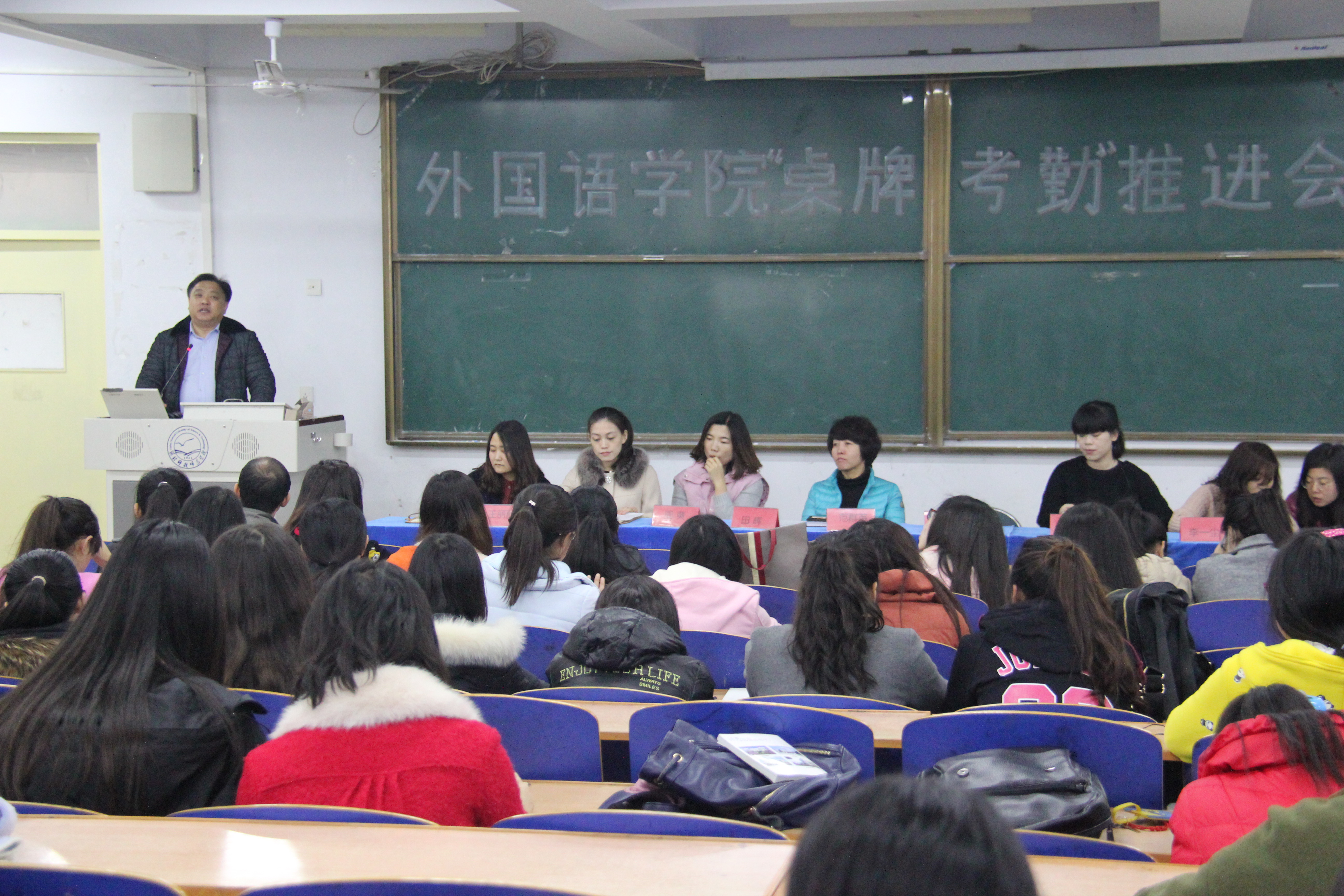 为响应学校“三风建设”要求,强化课堂考勤,优化课堂秩序,提升课堂教学效果,8455新葡萄场网站于2016年3月3日中午在教学楼212召开了推进课堂桌牌管理动员会。学院党委书记白雪松、副书记副院长范群英、全体辅导员及近160名学生干部和学生代表参加了会议。
