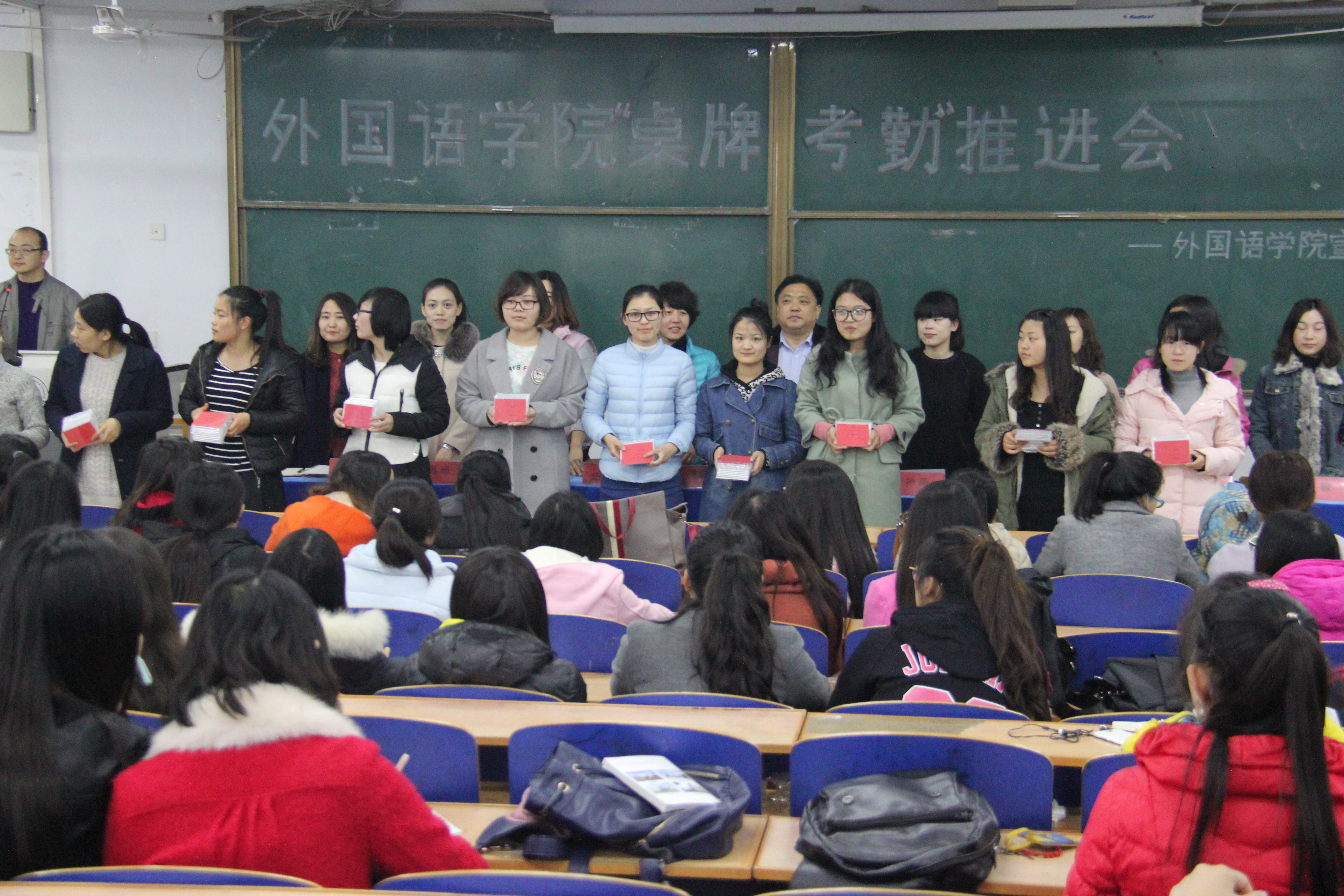 动员会上,学工办主任田辉宣读了《8455新葡萄场网站实施课堂桌牌制管理细则(暂行)》,学院领导和老师们将桌牌颁发给各班级代表。最后,学院党委书记白雪松对师生提出了几点希望:课堂桌牌管理是学院继“无手机课堂”后进行的又一项“三风”建设的特色活动,通过不断创新课堂管理,使学院“三风”建设走向精细化。希望全体学生通过践行课堂考勤桌牌制的要求,养成良好的课堂学习习惯。全体辅导员老师和学生会干部要加强监督考核,共同构建8455新葡萄场网站考勤严谨、沟通顺畅,高质有序的和谐课堂。