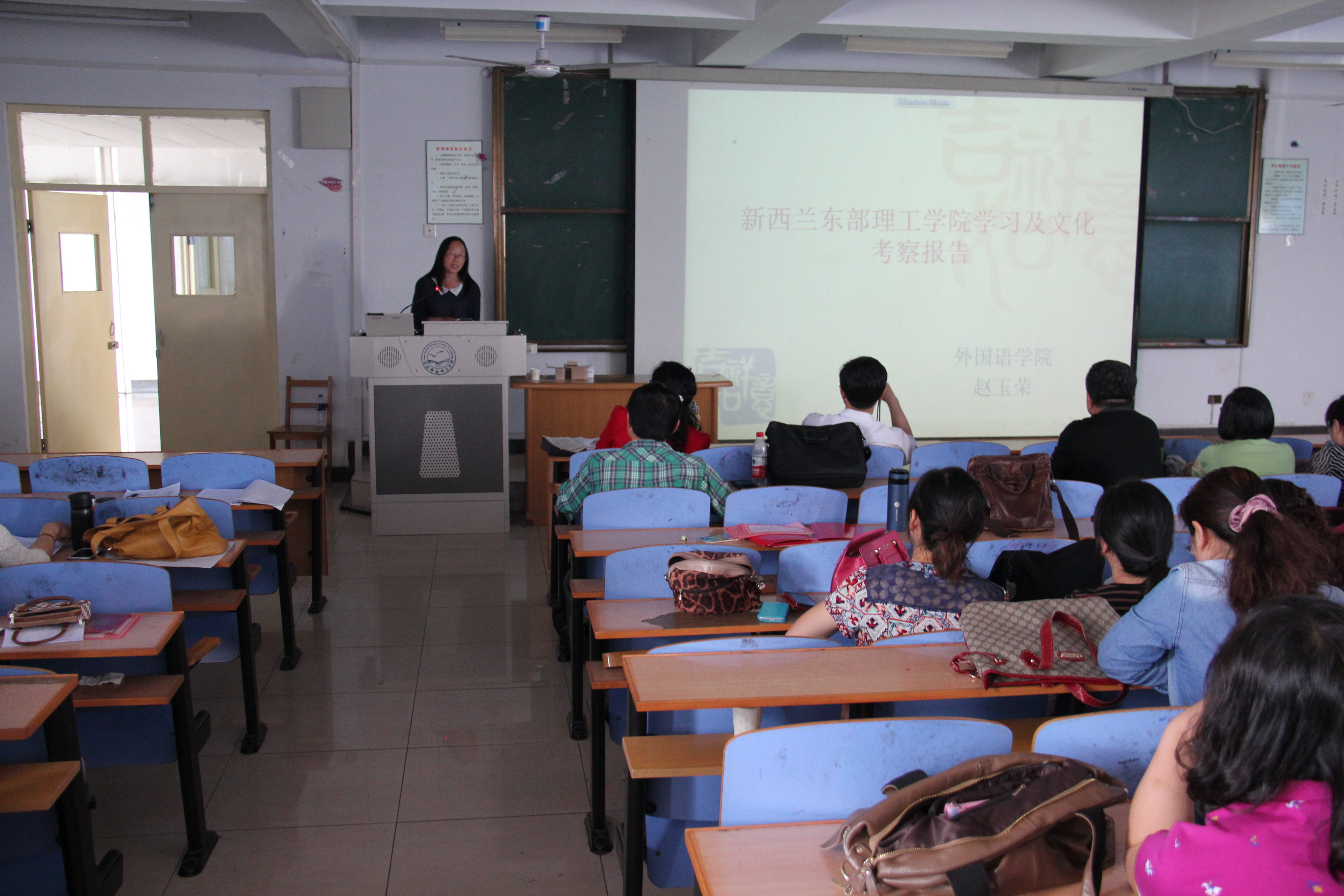 5月21日下午,8455新葡萄场网站在开发区校区综合楼312室召开新西兰归国教师汇报总结会,国际合作与交流处处长东方阳、8455新葡萄场网站院长邵丽君、副院长游建民及全体教职工参加了汇报总结会。