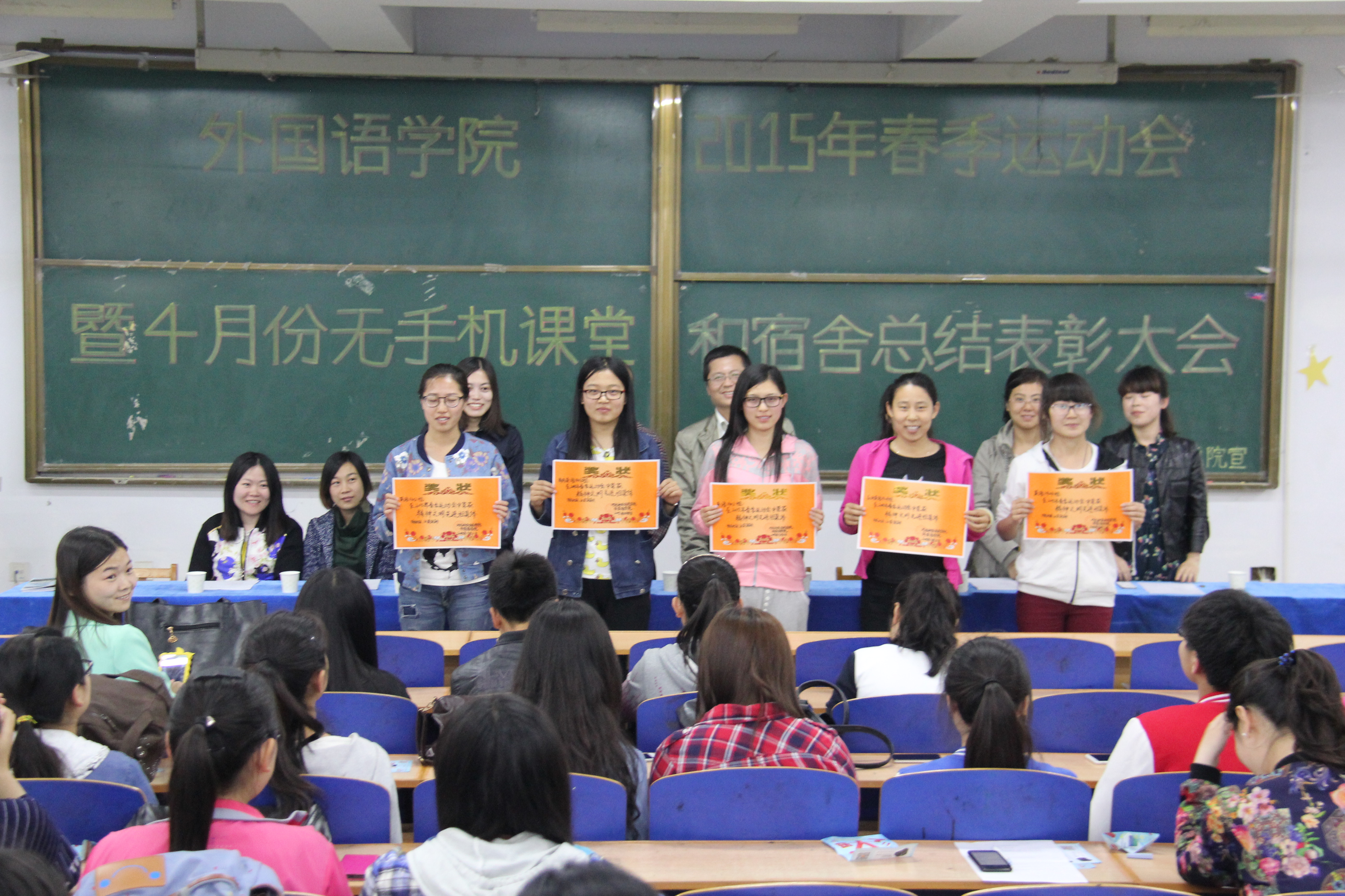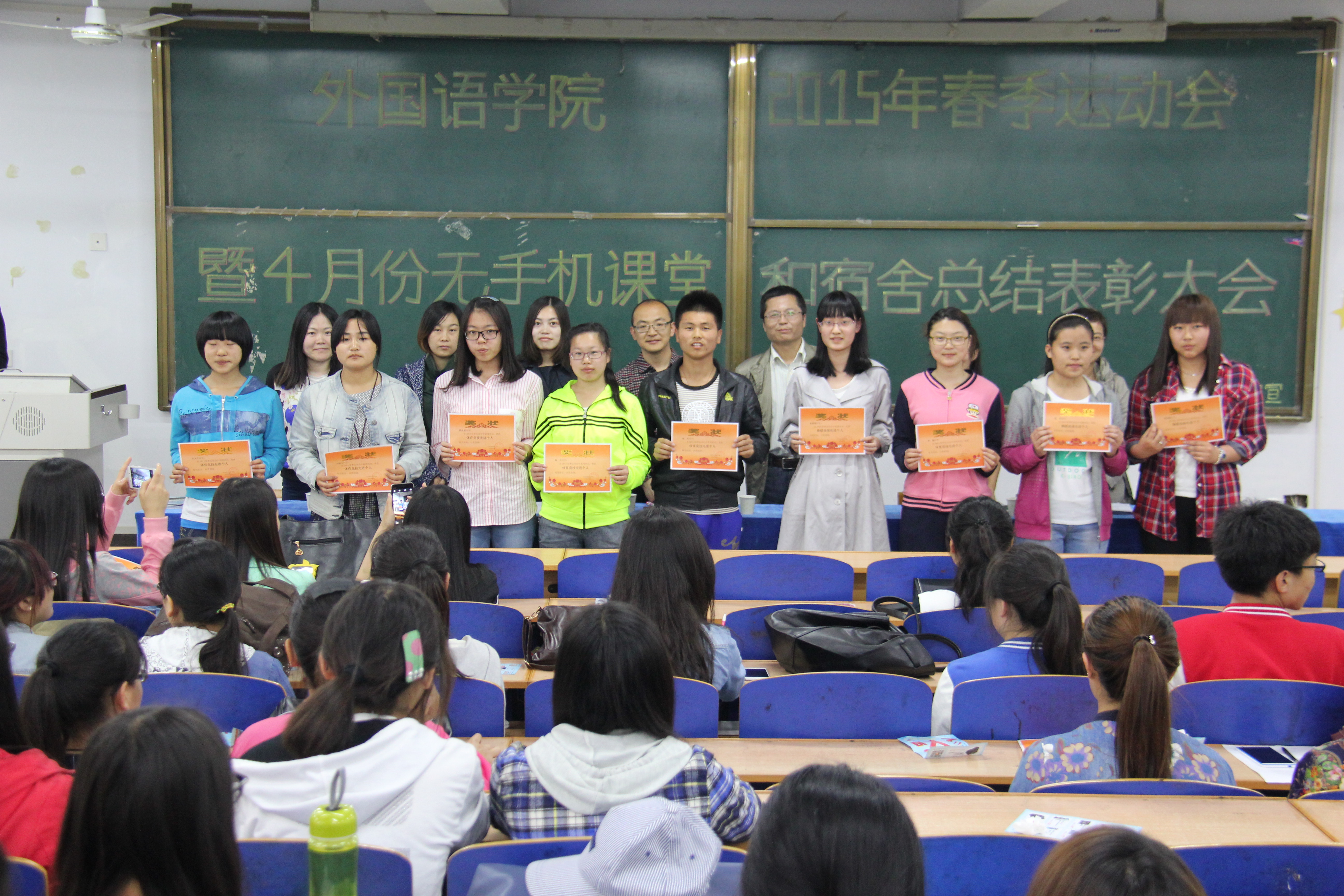 2015年8455新葡萄场网站春季运动会刚刚落下帷幕,8455新葡萄场网站获得运动会精神文明奖。为总结经验,传承运动会拼搏奋斗精神,8455新葡萄场网站于5月8日中午在综合楼312教室召开了2015年8455新葡萄场网站运动会总结表彰大会。学工办、全体辅导员、学生会全体成员和参加运动会的班委干部和运动员近200多人参加了大会。会上,全体老师们为获得2015年学院精神文明先进班集体、竞技先进班集体和运动会先进个人荣誉称号的集体和个人颁发奖状和证书。在发言中,老师们希望同学们通过运动会锻炼健康体魄,希望同学们发扬运动会团结一心,拼搏向上的精神,并在以后的学习工作中继续努力,取得更加优异的成绩。