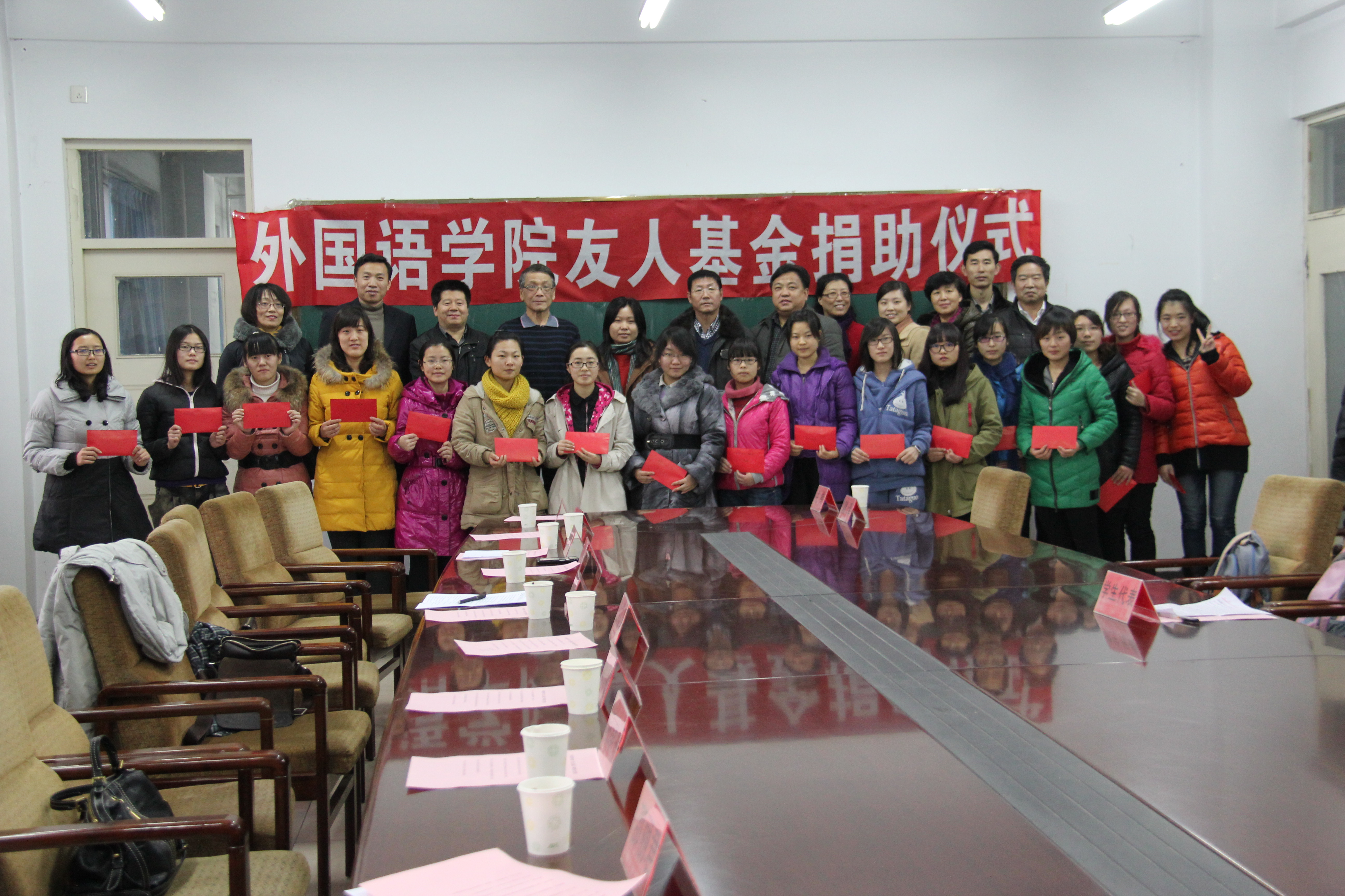 2013年12月24日下午,8455新葡萄场网站友人基金捐资助学仪式在开发区校区一楼会议室举行,副校长张福喜、学生处处长冯瑞银、宣传部副部长赵建平、学生处副处长宋文华、校团委书记于海印、8455新葡萄场网站党委书记白雪松、院长邵丽君、副院长游建民和副院长崔海英等领导参加了此次活动,捐助仪式由8455新葡萄场网站学工办主任田辉老师主持。此次捐助活动共募集人民币近九万元,募集资金全部资助给8455新葡萄场网站17名品学兼优的特困生。