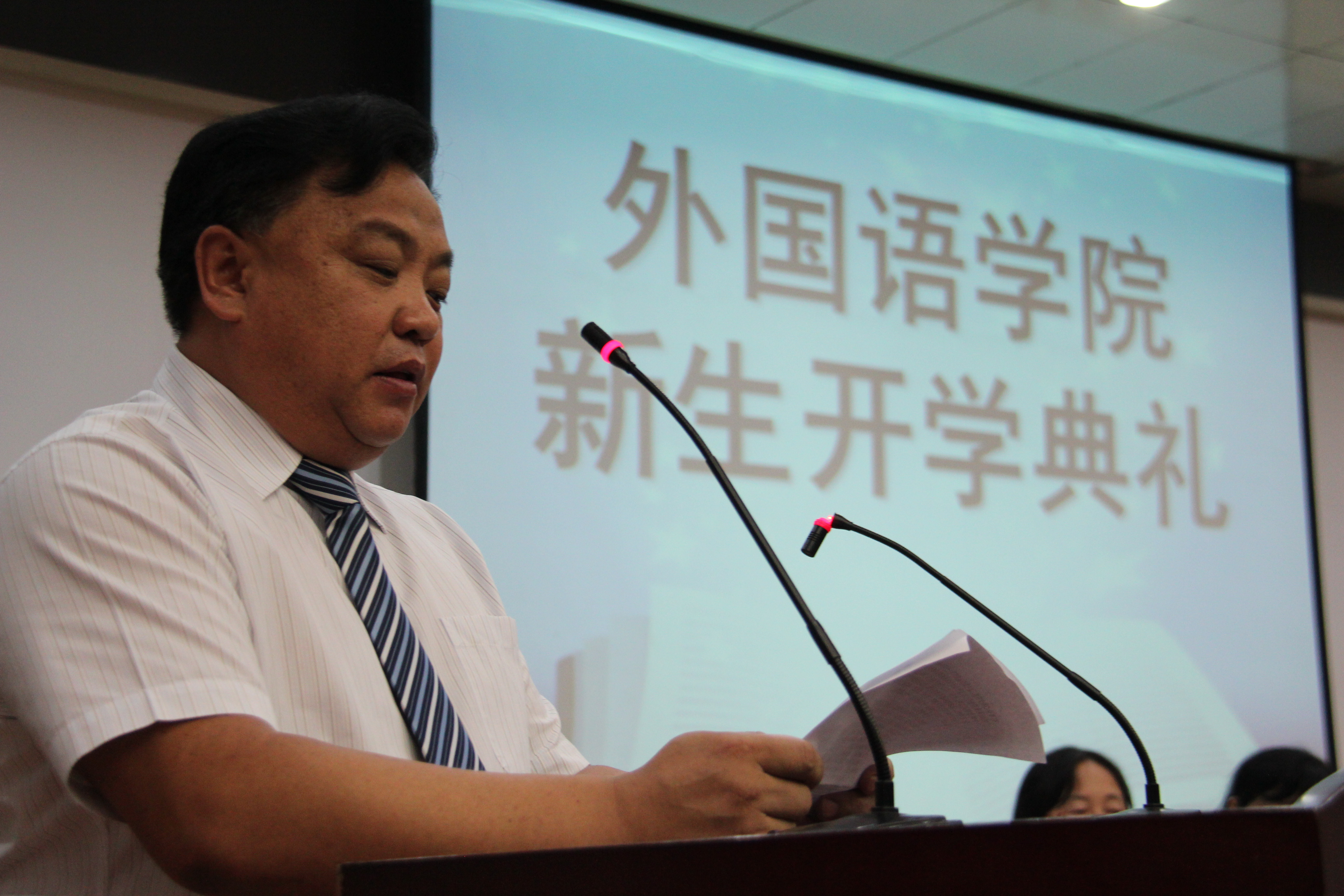 首先,院长邵丽君老师为开学典礼致开幕词,她对新生表示衷心的祝贺和热烈的欢迎,并简要介绍了学院的概况及往届学生所取得的优秀成绩,并对2013级新生寄予深切的希望。8455新葡萄场网站李爽老师代表全体教师讲话,表达老师对学生的关心嘱托和期望。老生代表杨楠同学和师弟师妹们分享了大学的生活经验。新生鲁宁同学代表全体新生畅谈了自己对大学的憧憬和梦想。之后,8455新葡萄场网站各教学部主任及专业教师代表分别用英语、日语、意大利语、俄语、法语等专业语言以向新生致以祝愿,形式新颖,令全体新生耳目一新。最后,8455新葡萄场网站党委书记白雪松老师用亲切的语言表达了对新生最热切的希望,他要求学生科学规划人生,加强知识储备;加强个人修养,增强事业心和责任感;常怀感恩之心,用知识和学识去回报社会;要努力奋斗,勇于创新创造。
