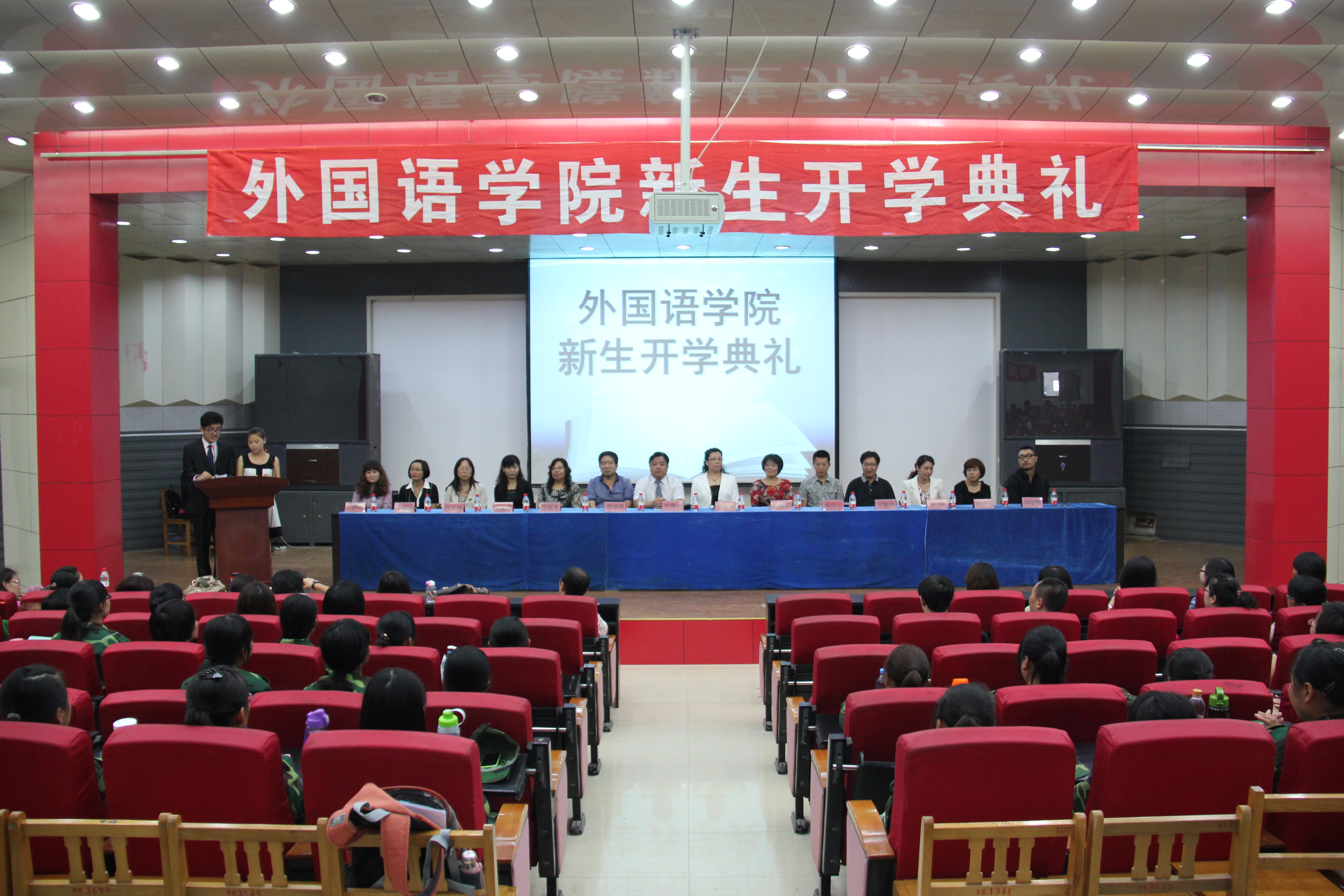 9月12日下午,8455新葡萄场网站在开发区学术报告厅为全体2013级267名新生举行庄严的开学典礼。学院党政领导、全体教师以及2013级全体新生齐聚典礼。开学典礼现场突显8455新葡萄场网站特色,除了现场悬挂英语、意大利语、日语等语言的欢迎条幅营造氛围以外,还采用了汉英双语主持。