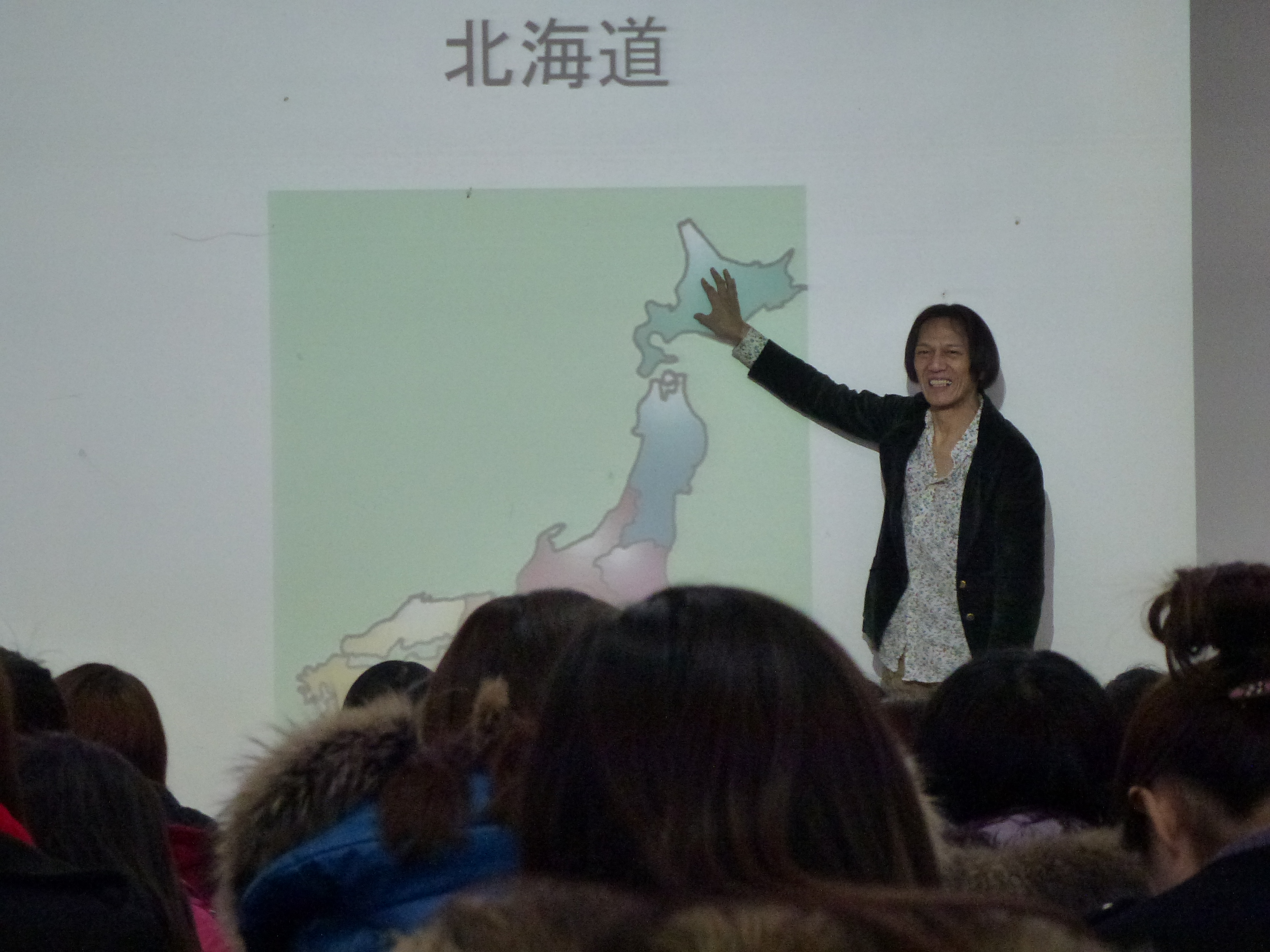 2012年11月24日,8455新葡萄场网站8455新葡萄场网站邀请日本学者小林寿绪先生来新葡萄官网讲学。应用日语专业师生参加了讲座。该讲座主要介绍日本国内存在的地域性差异,具体围绕着关东(东京)、关西(大阪)、中部(名古屋)、北海道(札幌)、九州(福冈)等地区来讲述日本人的思维方式、行为方式、生活习惯等方面的不同。讲座内容贴近日本真实生活,因而能够加强日语专业学生对日本的了解,进一步促进日语语言及日本文化的学习。