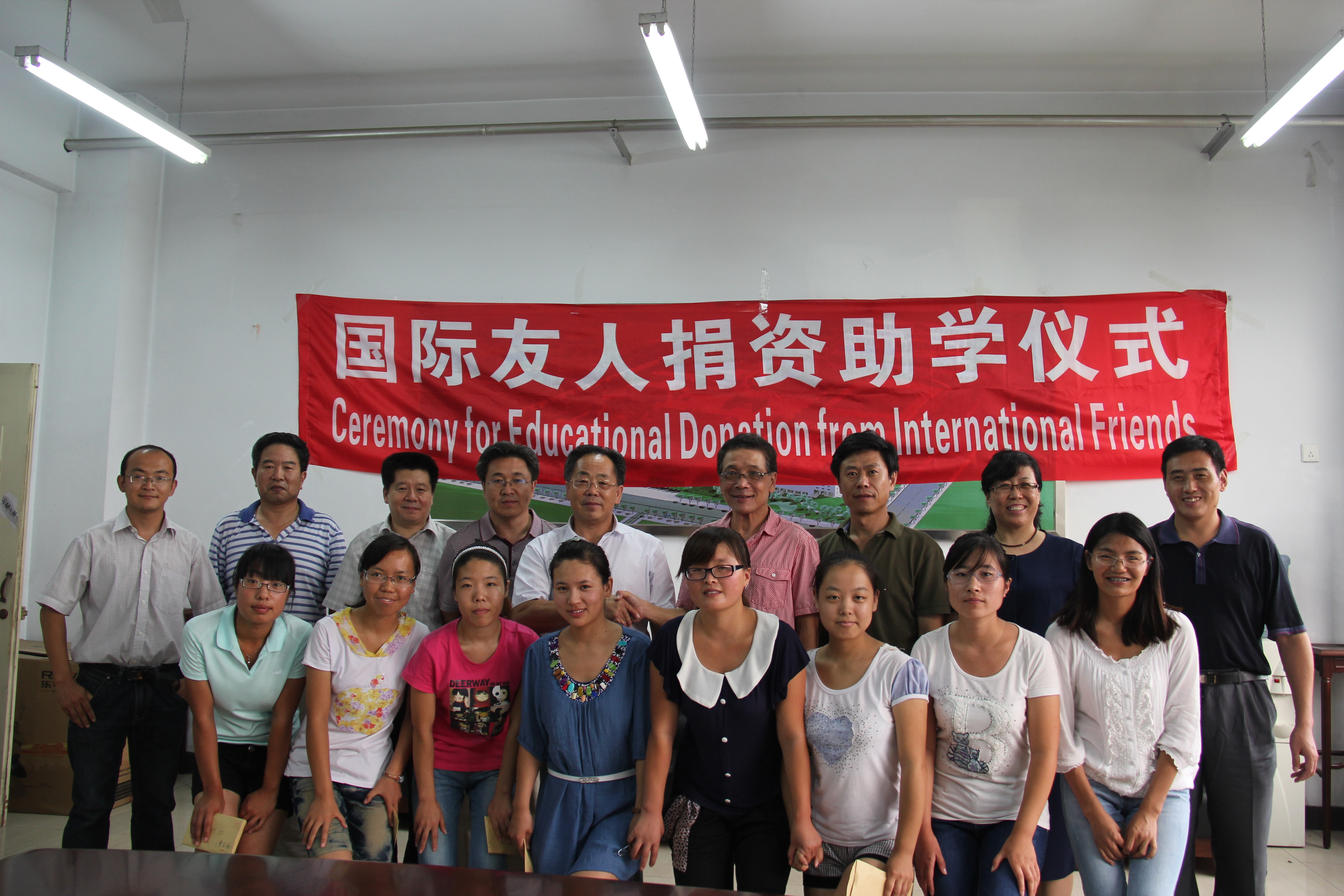 2012年8月30日下午,国际友人捐资助学仪式在开发区校区一楼会议室举行,学校孟令臣副校长、党委宣传部田毅部长、国际交流处东方阳处长、学生处冯瑞银处长、8455新葡萄场网站院长邵丽君、副院长游建民参加此次活动,仪式由8455新葡萄场网站党委书记刘朝晖主持。此次捐资助学活动由我校澳大利亚籍华人教师Michael先生发起。Michael先生到我校8455新葡萄场网站任教后,教学之余非常关心8455新葡萄场网站学生的生活和成长,看到有些学生因家庭贫困求学困难时,决定对这些同学提供帮助。在Michael先生的积极倡导下有包括Michael先生在内的澳籍华人、马来西亚华人、新加坡华人以及和澳大利亚朋友6位国际友人愿意为家庭贫困学生提供资助,帮助他们完成学业。此次共募集人民币41000 元,有8 名学生获得资助。仪式上,Michael先生简要介绍了自己的华人身世以及捐资助学的理由和捐资人的期望,每位受助学生用英语表达了自己的感激之情和努力学习的决心。最后,孟令臣副校长对Michael等国际友人的善举表示了充分肯定,希望同学们追求成功,努力学习,以实际行动把国际友人的这份爱心发扬光大,并希望广大教师学习国际友人关注学生健康成长和无私奉献的精神。