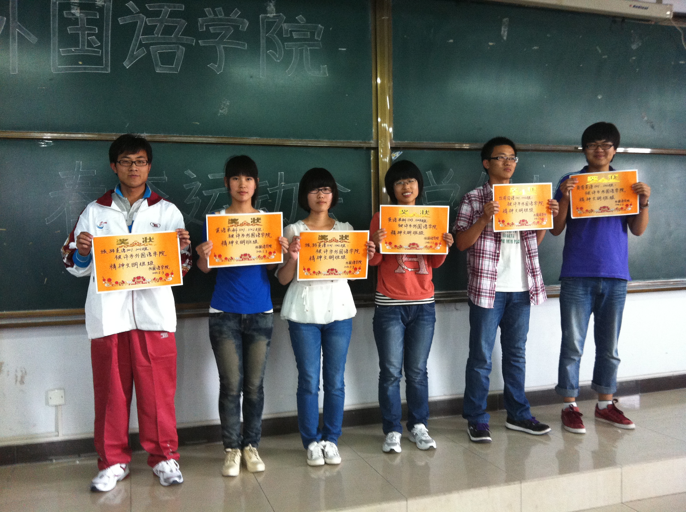会上,8455新葡萄场网站学工办主任田辉老师首先对8455新葡萄场网站在运动会上取得的成绩给予肯定,新葡萄官网在秦皇岛三校区共十三个院系中,以精神文明评比第一名和教工参与评比第一名的好成绩获得“精神文明单位”和“教工优秀组织奖”两项荣誉。这荣誉的取得离不开全院师生的共同努力,离不开全体学生会干部和班干部的努力和付出。随后团委书记李一尘老师宣读了获得“精神文明”先进班级体及先进个人名单,其中英语本科110102班,商务英语110102班等6个班级获得了“精神文明班”荣誉称号,张雪召、张婕等28人获得了运动会先进个人荣誉称号。同时学院学工办对应用英语100102班等班级进行通报批评。会议最后,老师们为先进班级体颁发了奖状。大会在热烈的掌声中大会圆满结束。(田辉)