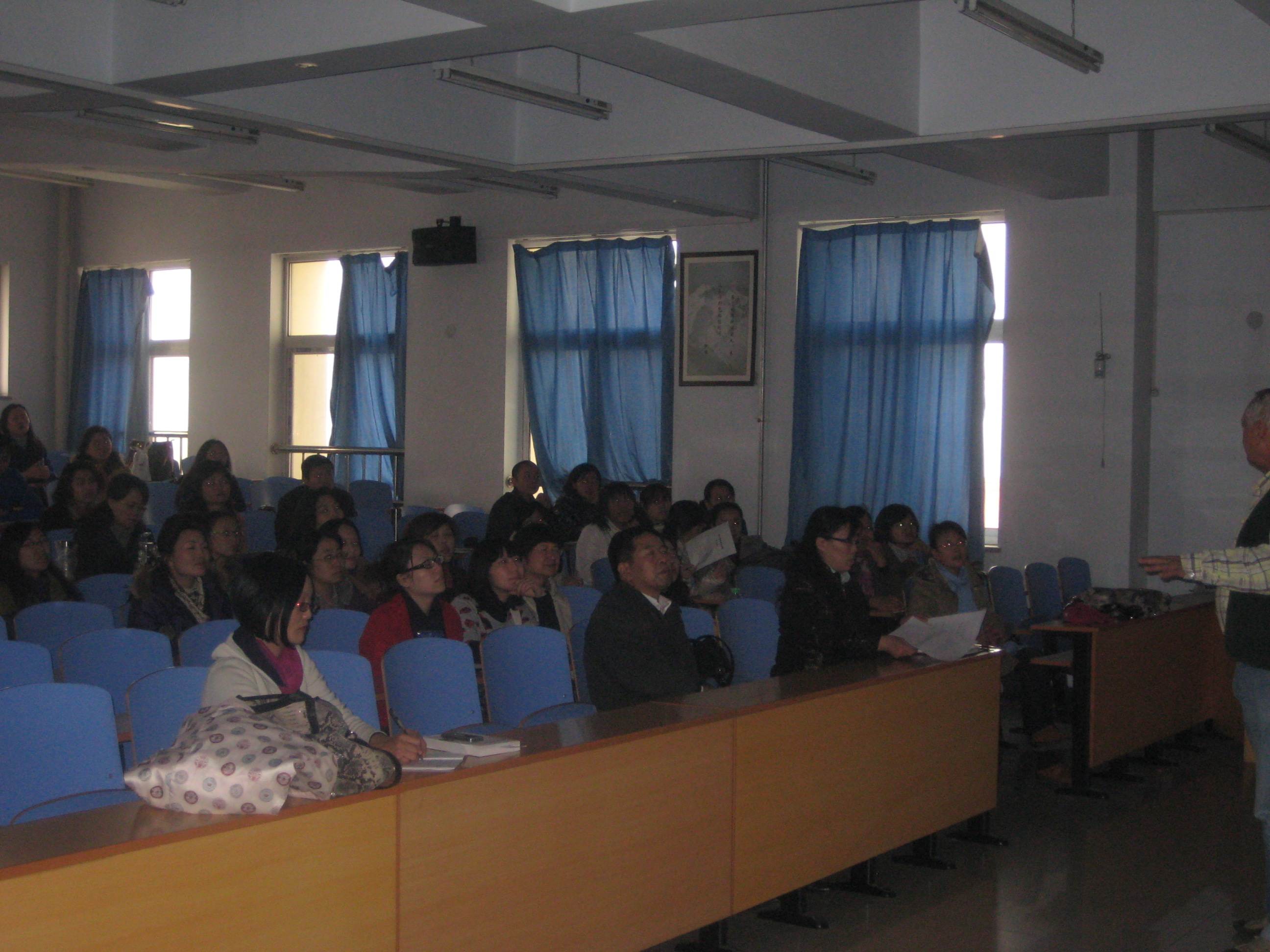 12月16日,Troy大学教授Freeman为8455新葡萄场网站教师奉献了一堂生动的讲座。出席本次讲座的主要是8455新葡萄场网站教授英语的教师们。Freeman教授就关于如何提高学生的课堂积极性,如何让学生更主动的参与到课堂教学方面的问题为大家做了详细的阐述和演示。通过一系列的课件和数据分析,让在座的教师们明白了学生积极参与对课堂教学的重要。各位教师和Freeman教授进行了良好的互动交流,纷纷表示受益匪浅。