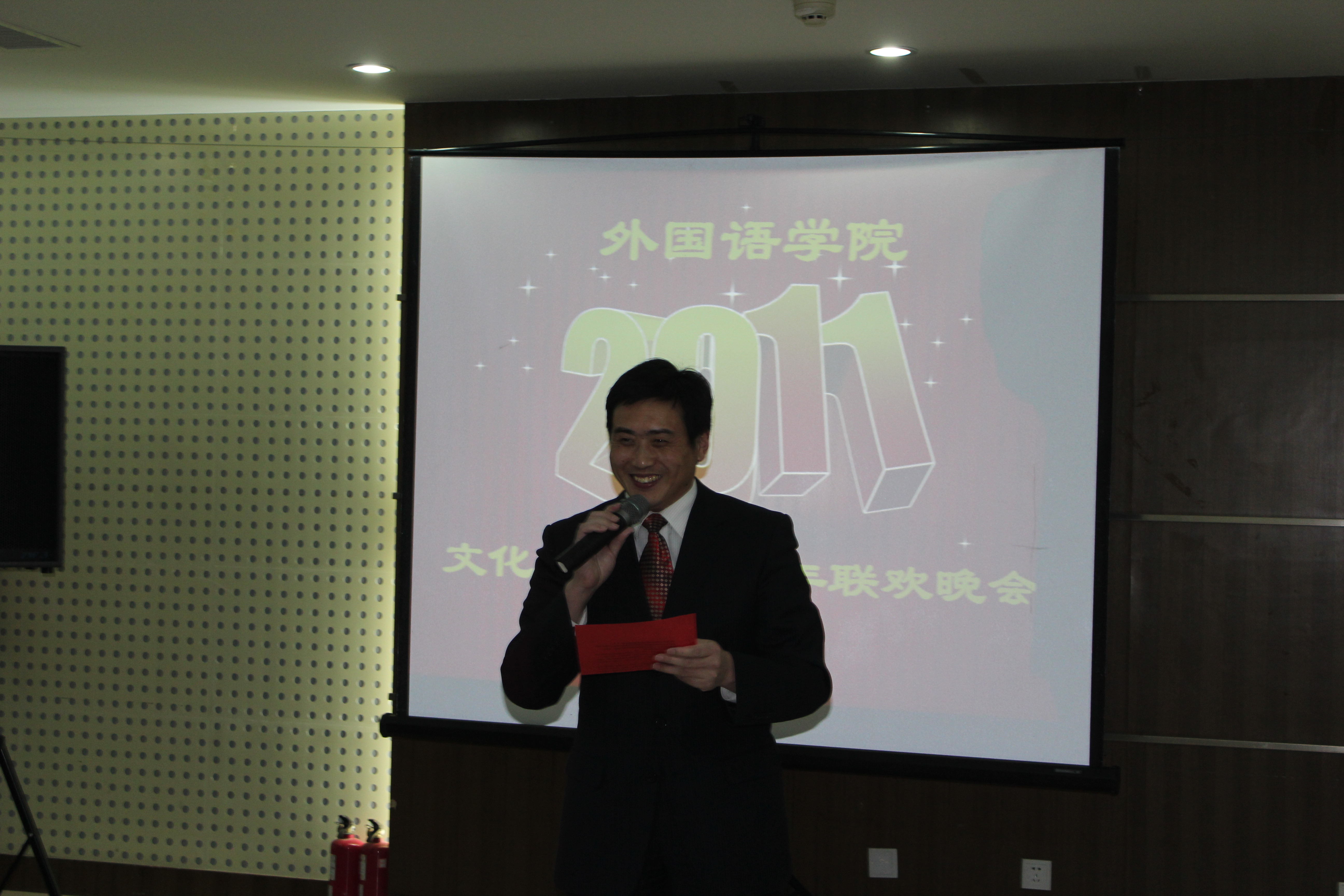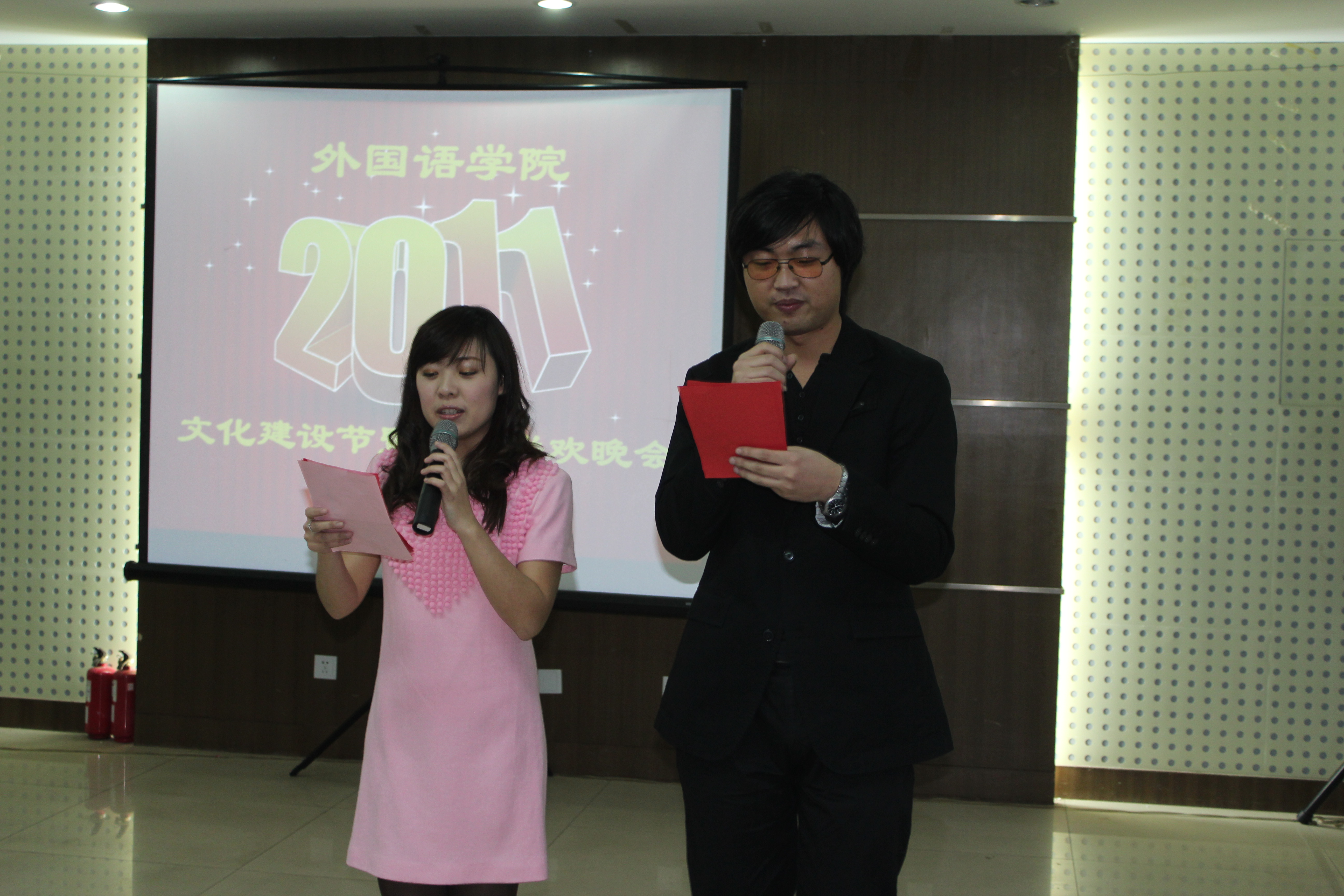 2011年1月6日下午,8455新葡萄场网站举行了“8455新葡萄场网站文化建设节暨新年联欢会”。这是新葡萄官网整体搬迁到开发区校区后的第一次全体教职工参与的大型的文化建设活动,与会者有校党委常委、欧美学院党委书记杨洪青同志、校工会主席毕丹霞同志以及新葡萄官网全体领导和教职工。