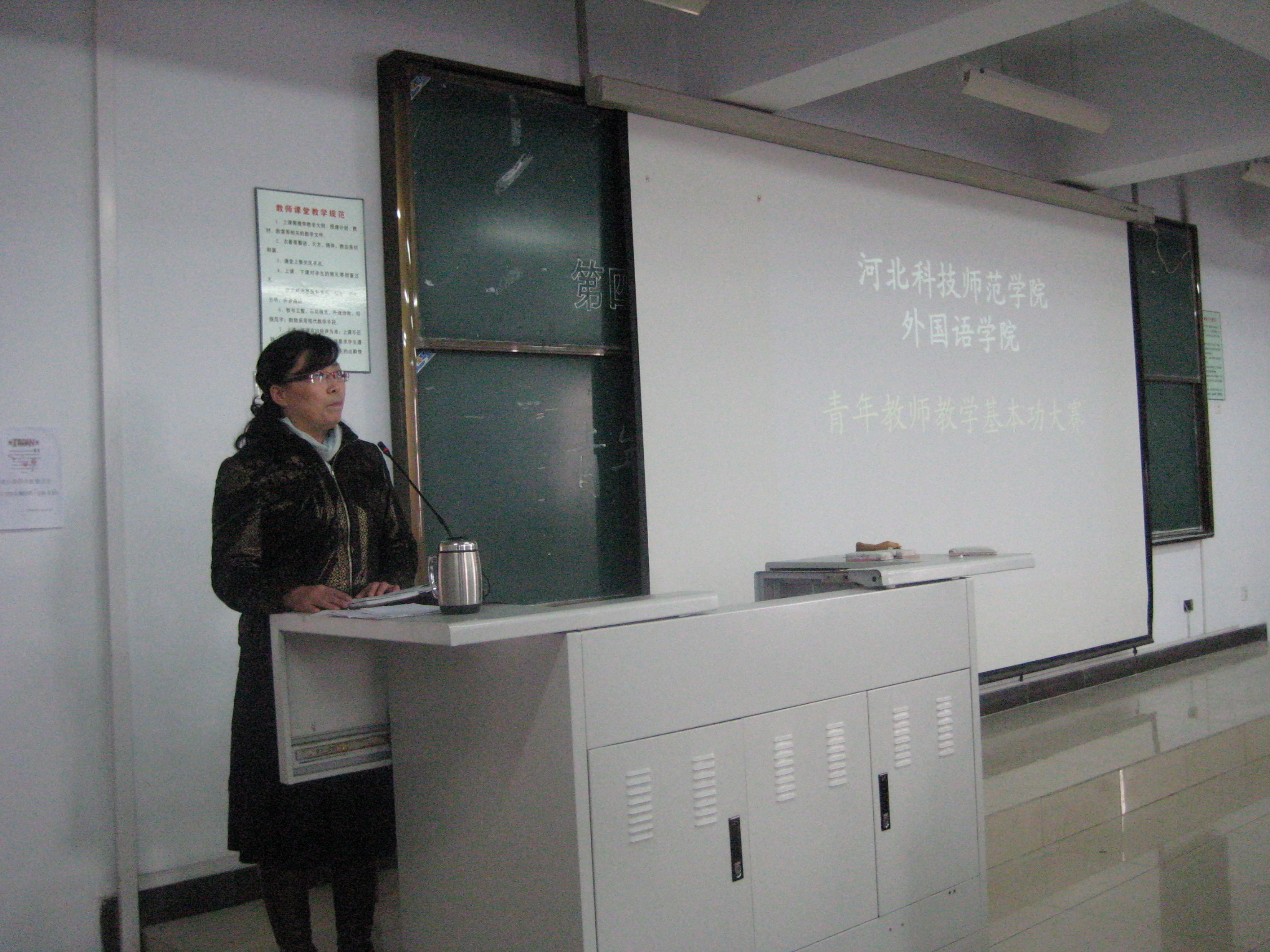 11月初8455新葡萄场网站以各教学部为单位开展了“青年教师基本功大赛”的初赛,除个别因病事假的青年教师以外,学院共有31名符合参赛条件的青年教师参加了初赛,最终通过教学部推荐选出9名优秀教师参加了新葡萄官网11月11日举行的决赛。比赛评委由8455新葡萄场网站院长邵丽君、副院长游建民、崔海英以及各教学部主任等共9名教师组成。