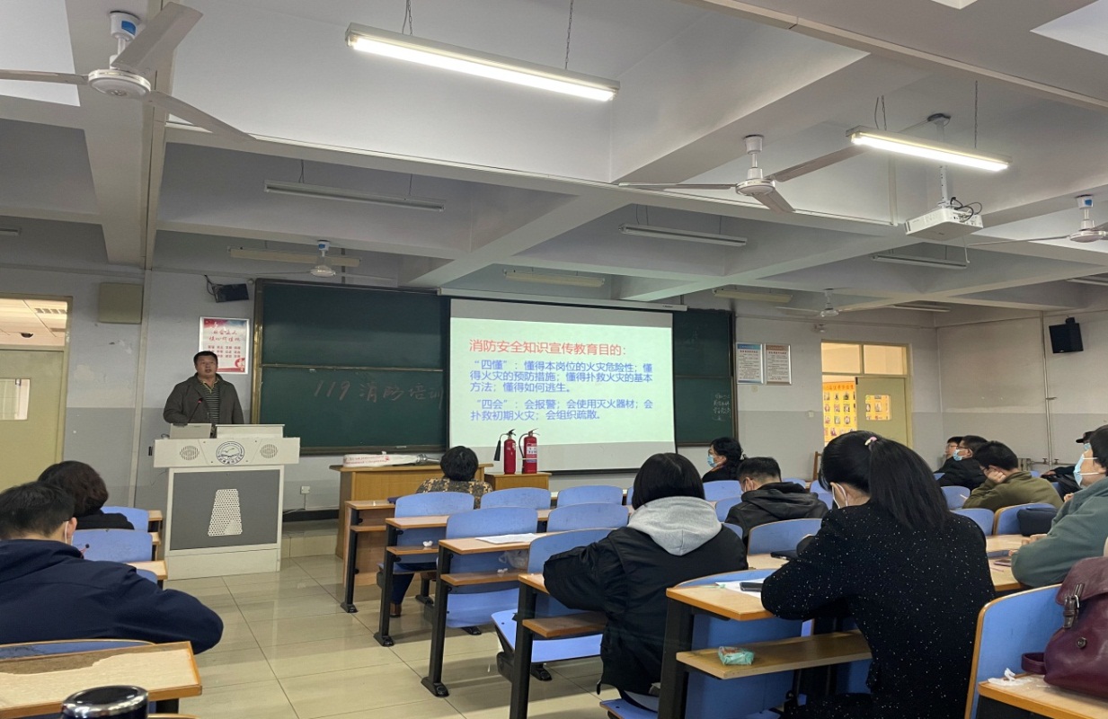 为进一步提高学院全体教职工的消防安全意识,全力普及消防安全知识及自救逃生技能,11月11日下午,8455新葡萄场网站邀请安全工作处闫继锋副处长等三位老师在开发区校区综合楼312开展消防安全知识讲座,8455新葡萄场网站全体教职工参加了讲座。