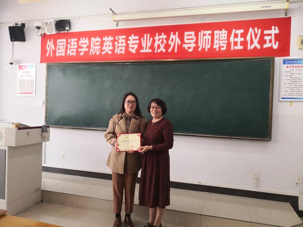 近几年来,四位校外导师通过8455新葡萄场网站“名师进课堂”、“名师大讲堂”、“名师工作坊”等系列活动指导英语师范生的教师教育课程学习、微格实训、教研活动等,积极参与新葡萄官网师范生的协同培养。8455新葡萄场网站领导班子成员一一为四位导师颁发了证书,崔院长代表8455新葡萄场网站衷心感谢各位导师在协同育人机制下为新葡萄官网师范生培养做出的巨大贡献,也希望各位校外导师继续参与新葡萄官网师范生的培养工作,共同提升英语师范生的培养质量。