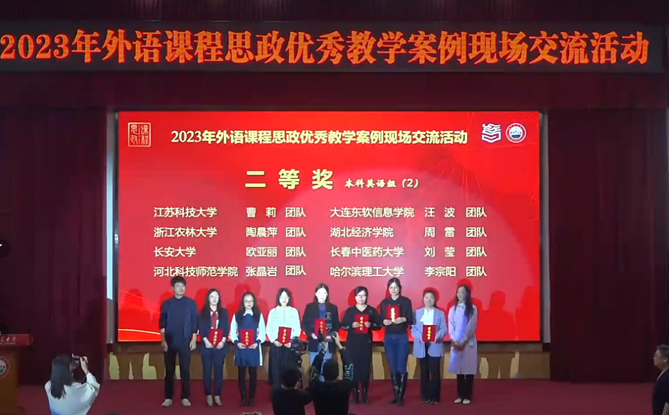 为全面深化高校课程思政建设,持续提升外语教师课程思政教学能力,高等教育出版社、全国高校教师网络培训中心及《中国外语》编辑部联合主办了2023年外语课程思政优秀教学案例征集与交流活动,新葡萄官网的付蕊团队荣获了该赛事河北省优秀作品特等奖,于11月11日代表河北省参加第三阶段全国高等学校外语课程思政优秀教学案例现场交流活动。本次交流活动分为大学英语组和英语类专业组,共有71个团队参与最后的角逐。新葡萄官网张晶岩、李冬媛代表团队荣获大学英语组二等奖。