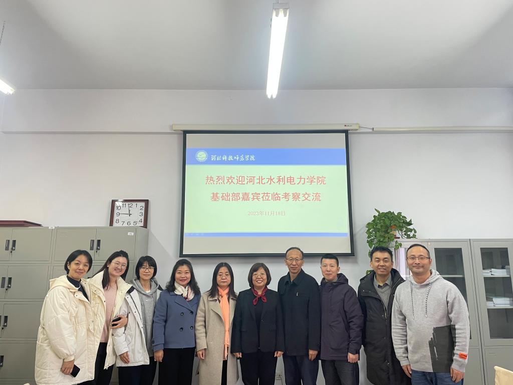 11月18日,河北水利电力学院基础部主任郝海森、基础部公外教研室主任汪艳萍一行5人来我校8455新葡萄场网站考察交流。8455新葡萄场网站副院长范学荣主持座谈会,副院长罗学锋,大学外语拓展和基础教学部主任韩庆山、王伟、姜蓝,学科教学英语教学部主任刘晓冰参与座谈。