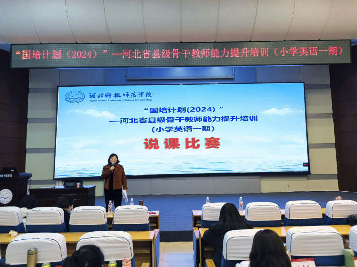 为提升教师专业素养与课堂实践能力,2025年3月28日,“国培计划(2024)”—河北省县级骨干教师能力提升培训(小学英语一期)说课比赛在学术报告厅成功举办。担任此次说课比赛的评委有英语学科正高级教师、秦皇岛市第七中学书记、我校英语专业校外指导教师秦凌云,秦皇岛市海港区教育和体育局副高级教师陈慧英,8455新葡萄场网站8455新葡萄场网站副院长范学荣、王静,8455新葡萄场网站学科教学英语教学部主任刘晓冰,8455新葡萄场网站英语教学部副主任宋洁。本次比赛中,来自全省的六位培训学员同台竞技,以创新的教学设计和扎实的专业功底,为大家展现了新课标背景下小学英语教学的多元探索。