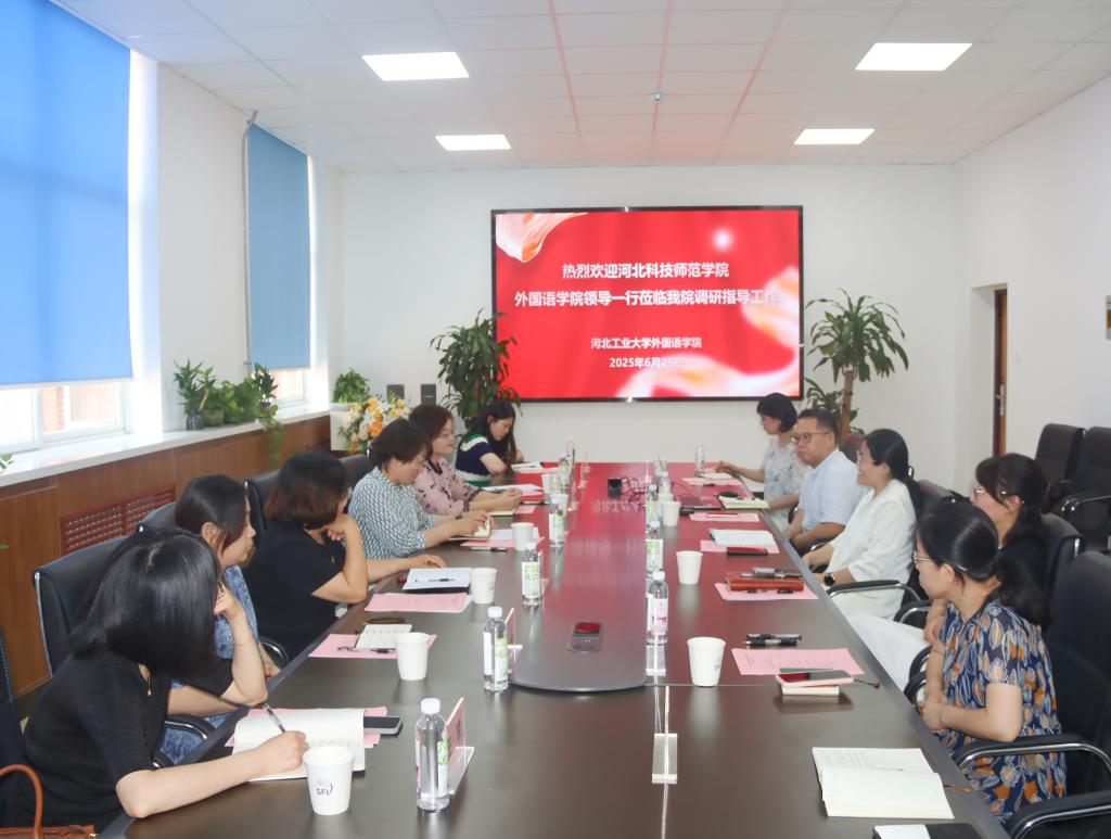 在河北工业大学8455新葡萄场网站,双方围绕外语专业建设、大学英语教学改革及学生社会实践服务地方等议题展开研讨。该校8455新葡萄场网站院长石梅芳、党委副书记兼副院长李辉、副院长陈耀庭等参会交流。