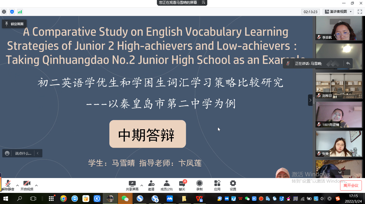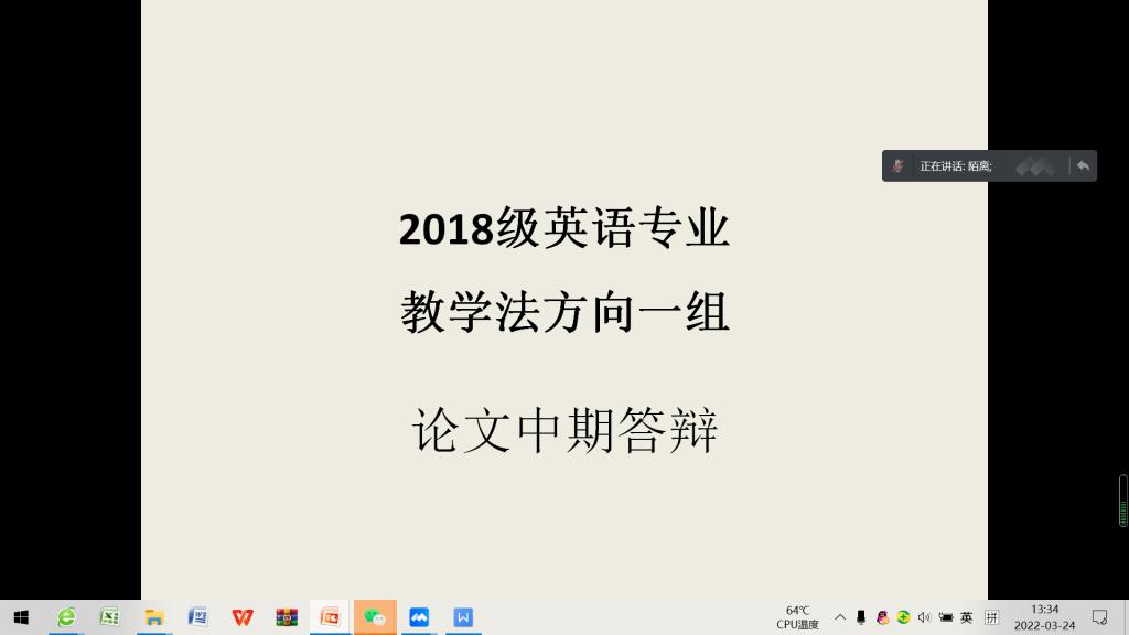 2022年3月24日,按照毕业论文计划安排,8455新葡萄场网站英语教学部组织2018级学生进行毕业论文中期答辩。答辩以腾讯会议形式线上进行。