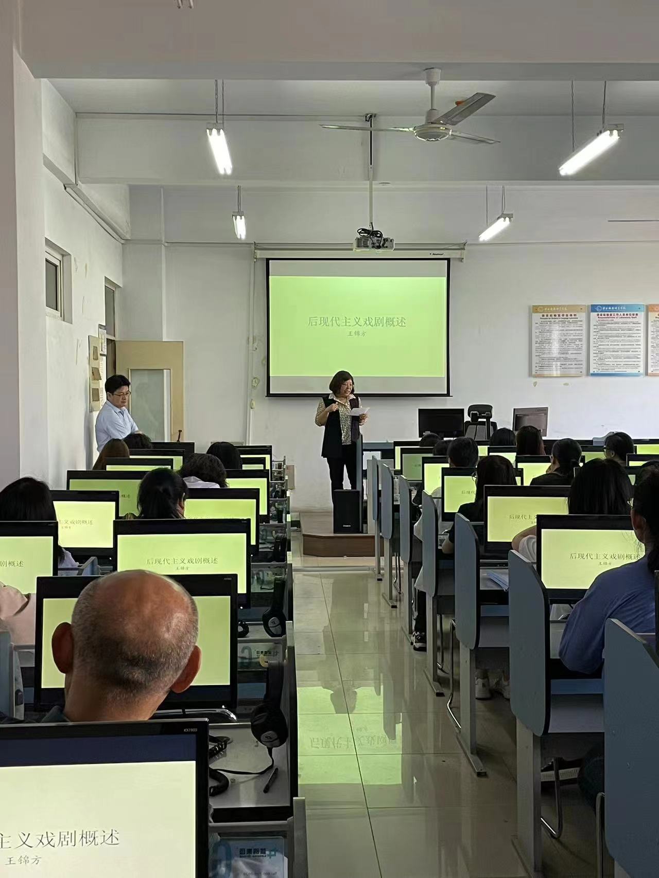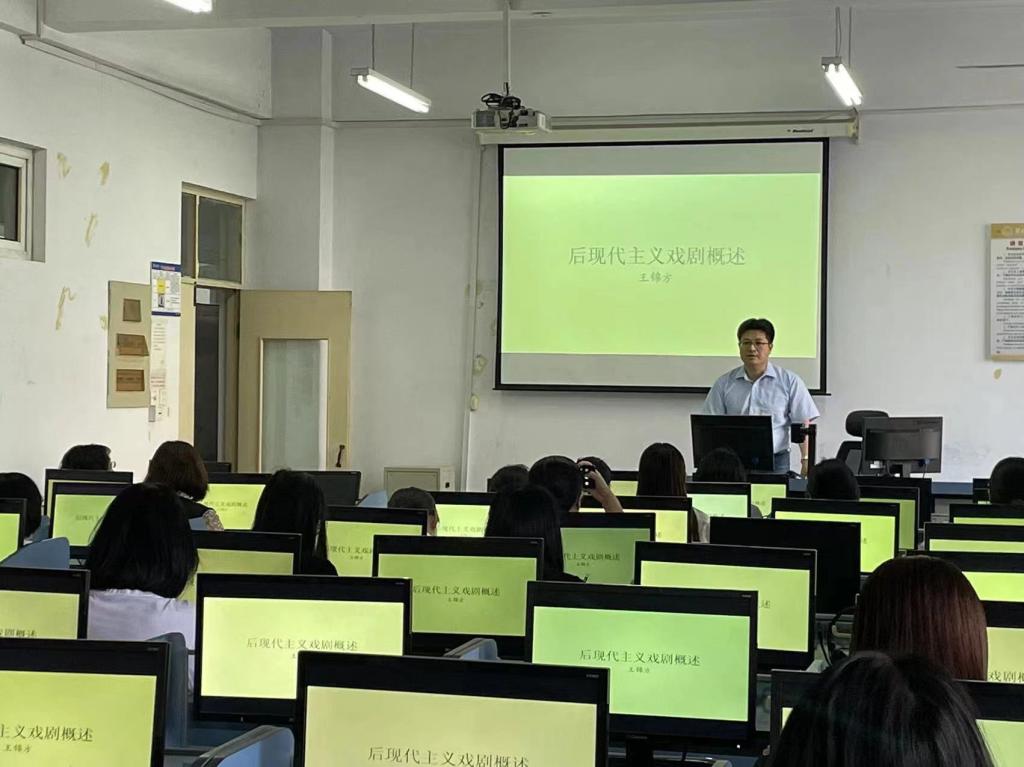 2024年5月30日8455新葡萄场网站邀请王锦方博士主讲题目为《后现代主义戏剧概述》的学术报告。外语学院英本教学部教师、学科教学(英语)教学部教师及硕士研究生、对英美文学感兴趣的教师参加了此次报告。